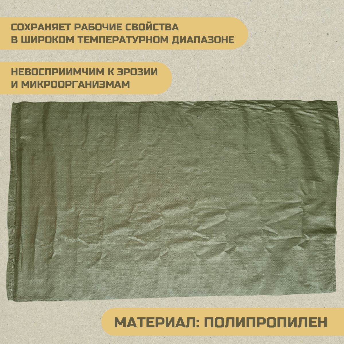 Купить Мешок полипропиленовый зеленый 55см х 95см (+/-3см), 10шт