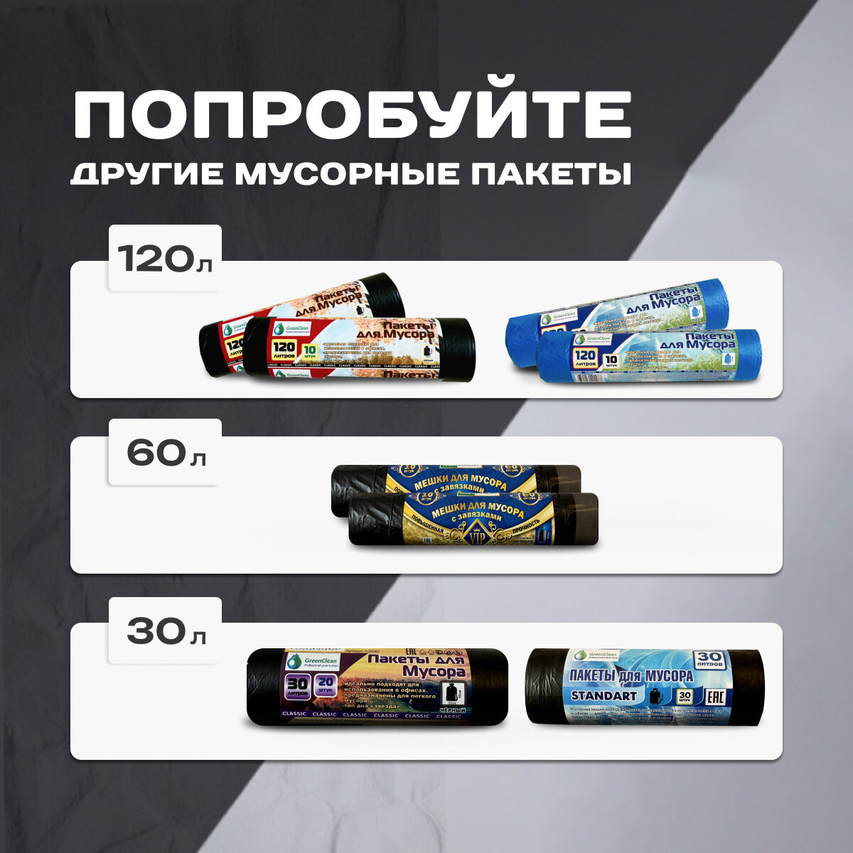 Мешки для Мусора Green Clean Classic 60 л 40 шт, Черные интересное: