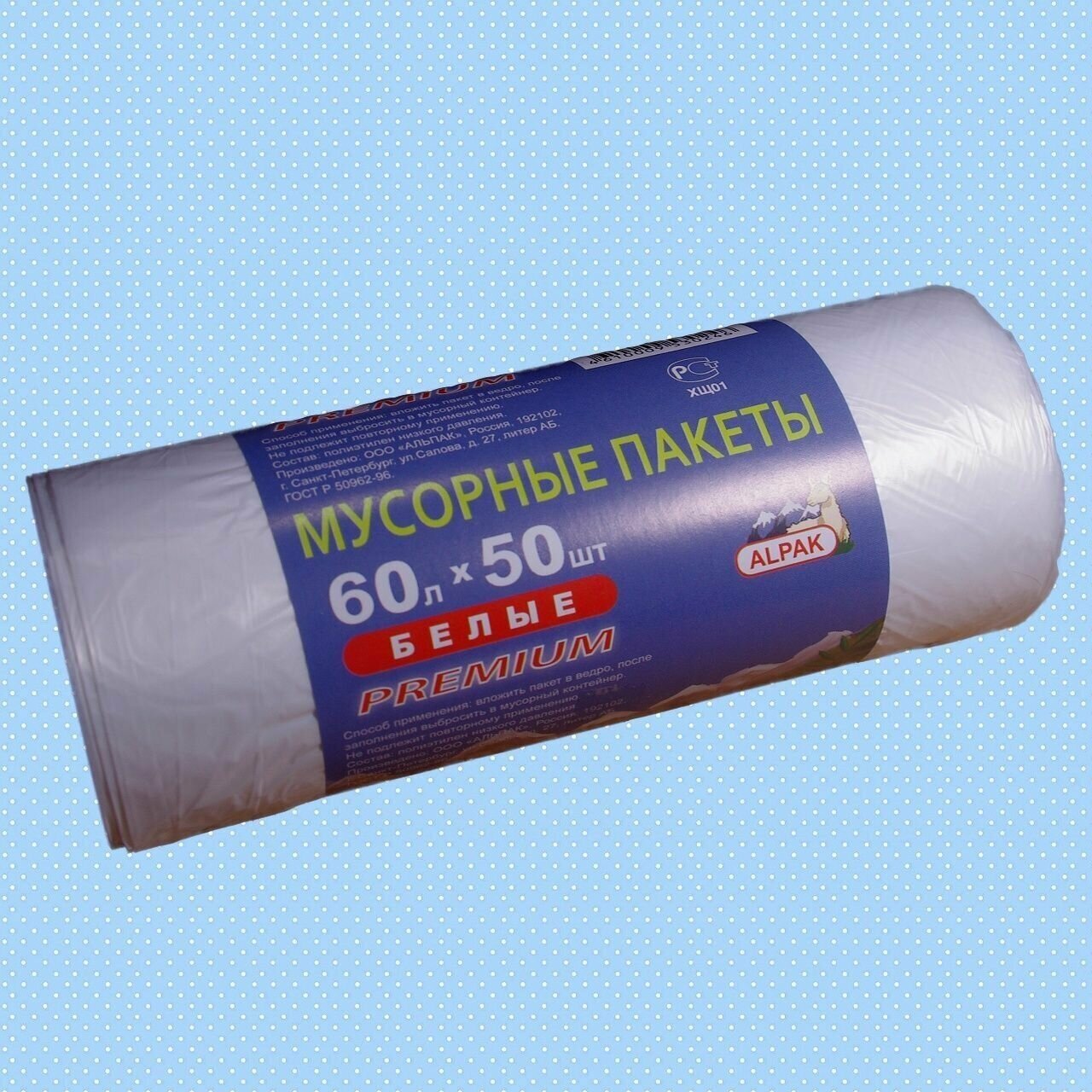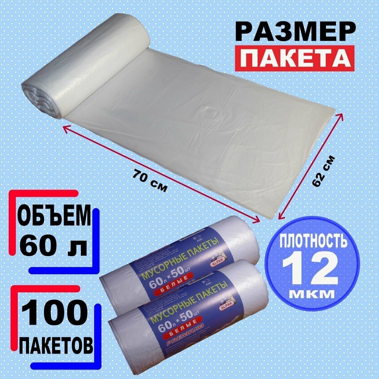Купить Мусорные пакеты "альпак" Premium, 12 мкм, 60л по 50шт, 2 рулона 100 шт, белые