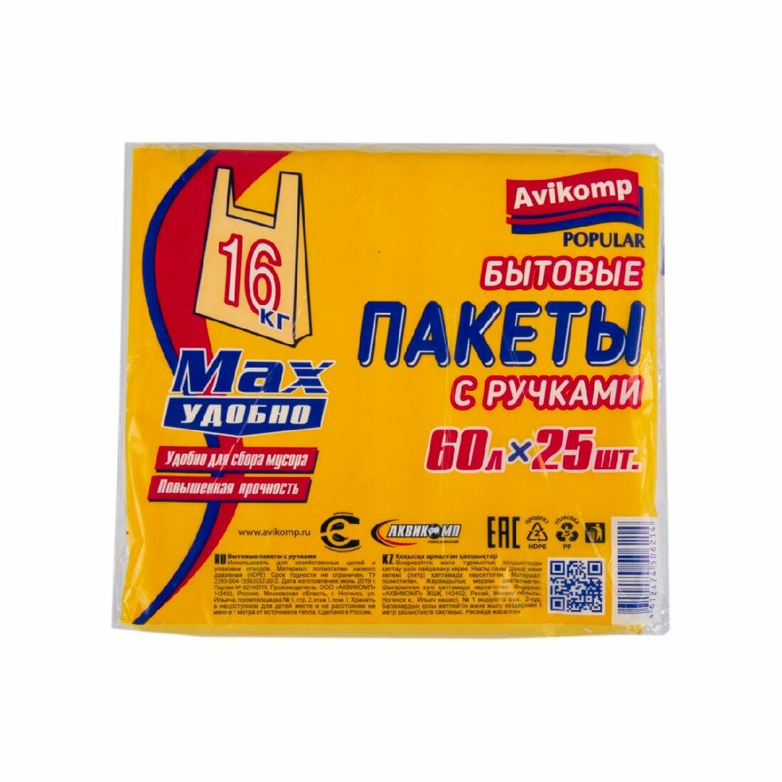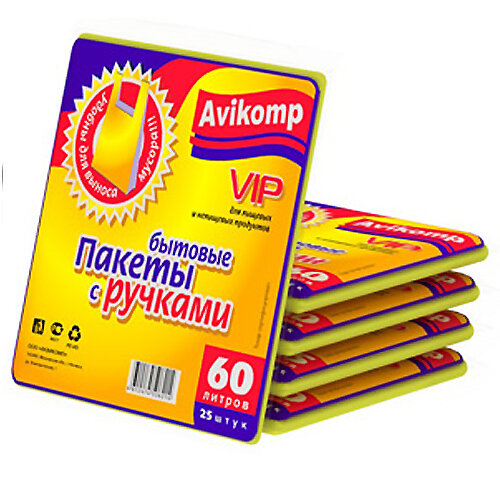 Мешки для мусора Avikomp бытовые с ручками 60 л, 25 шт, Желтый интересное: