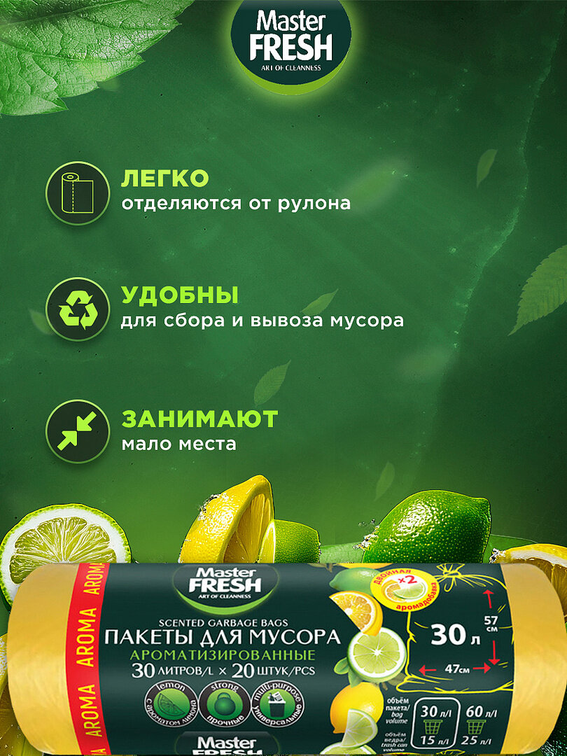 Пакеты для мусора Master Fresh набор арома желтые 7мкм 30л/20шт *3шт интересное: