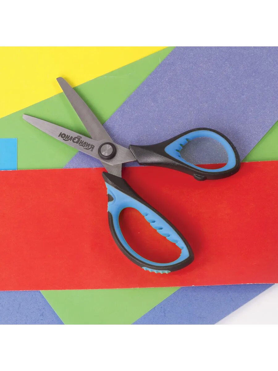 Ножницы "BASIC", 155 мм, ребристые резиновые вставки, черно-голубые, европодвес интересное: