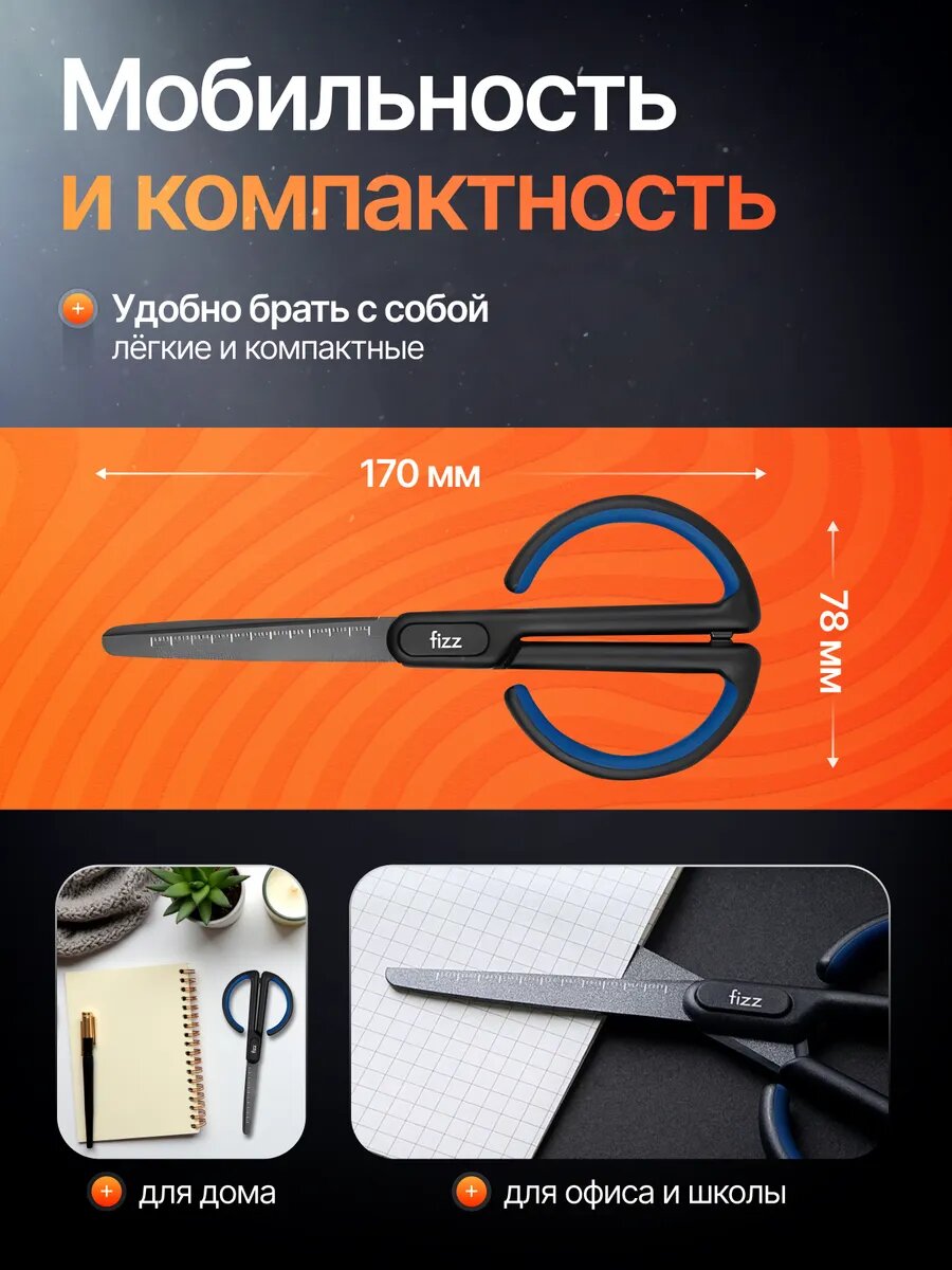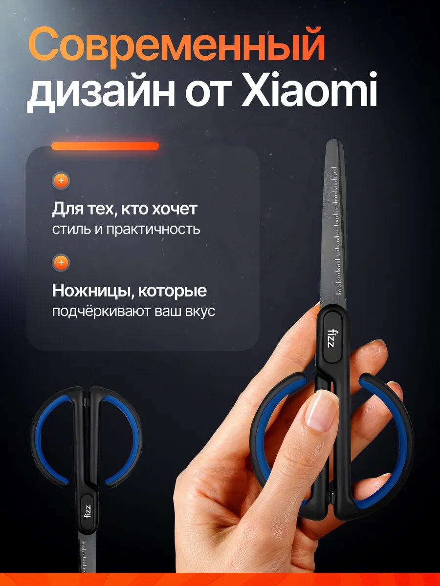 Ножницы канцелярские, Xiaomi Fizz, для бумаги, острые, нержавеющие лезвия, синий/черный интересное: