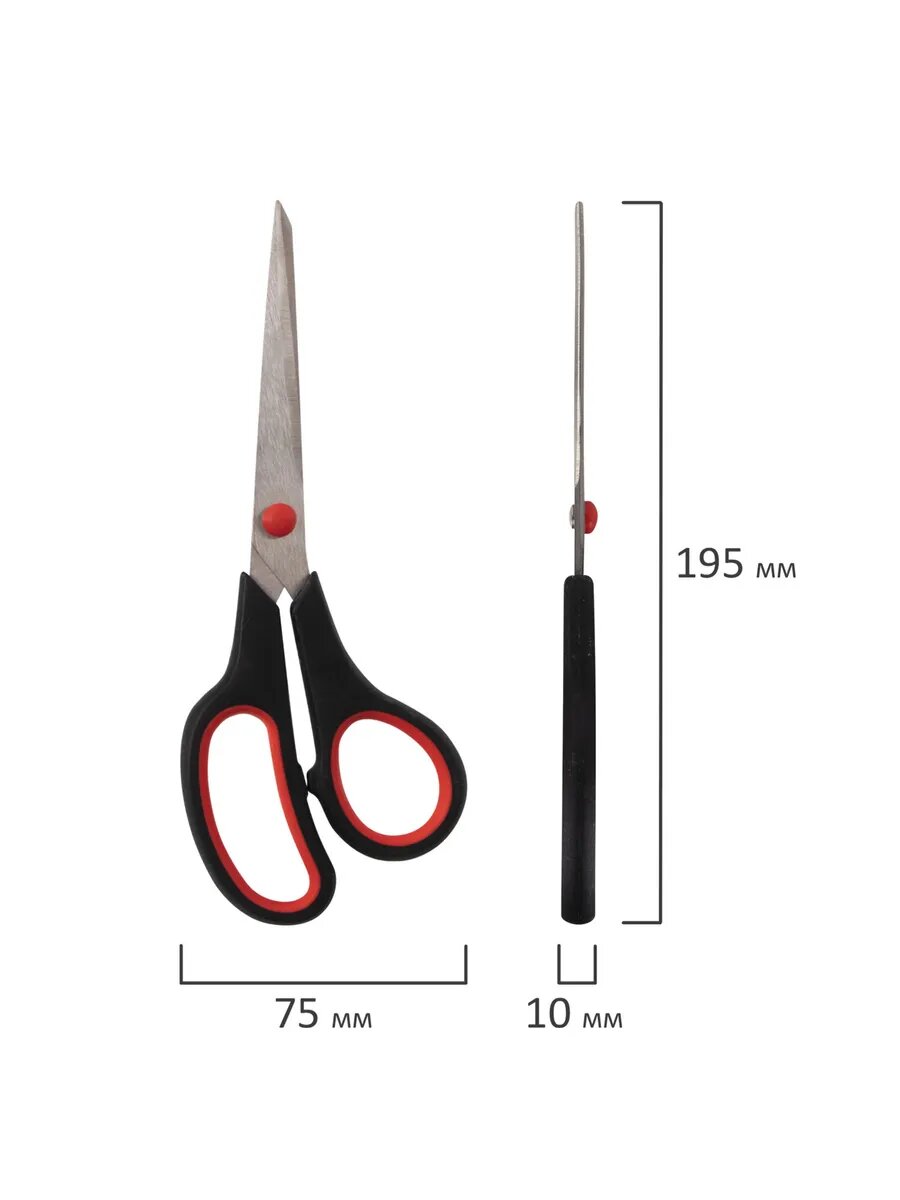 Купить Ножницы EVERYDAY, 195 мм, бюджет, резиновые вставки, черно-красные