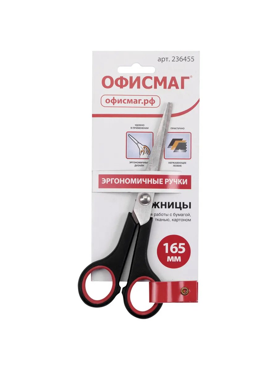 Ножницы "Soft Grip", 165 мм, резиновые вставки, черно-красные, 3-х стороняя заточка интересное: