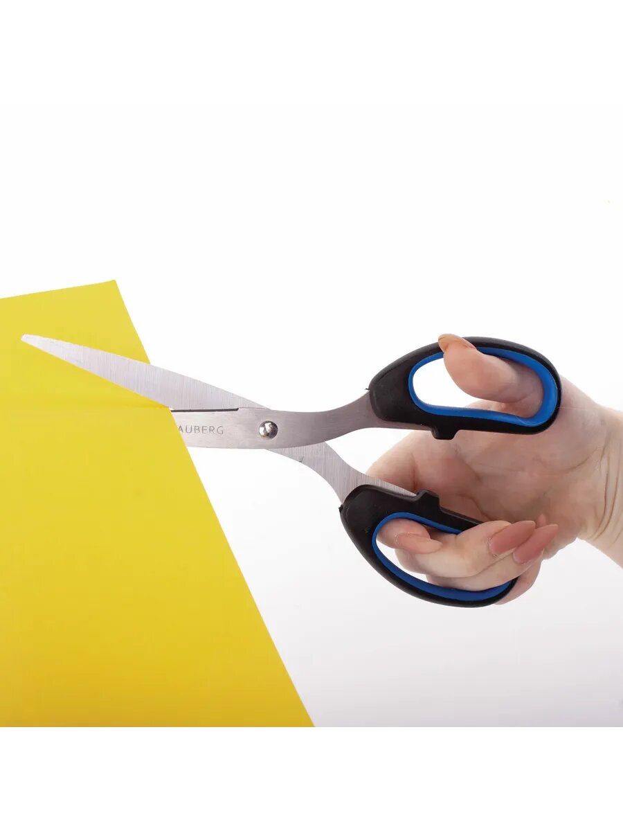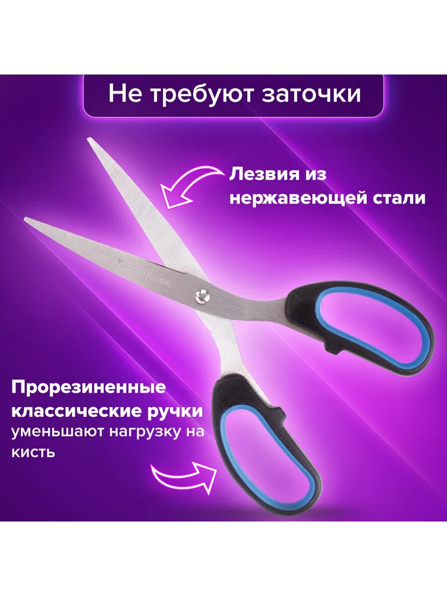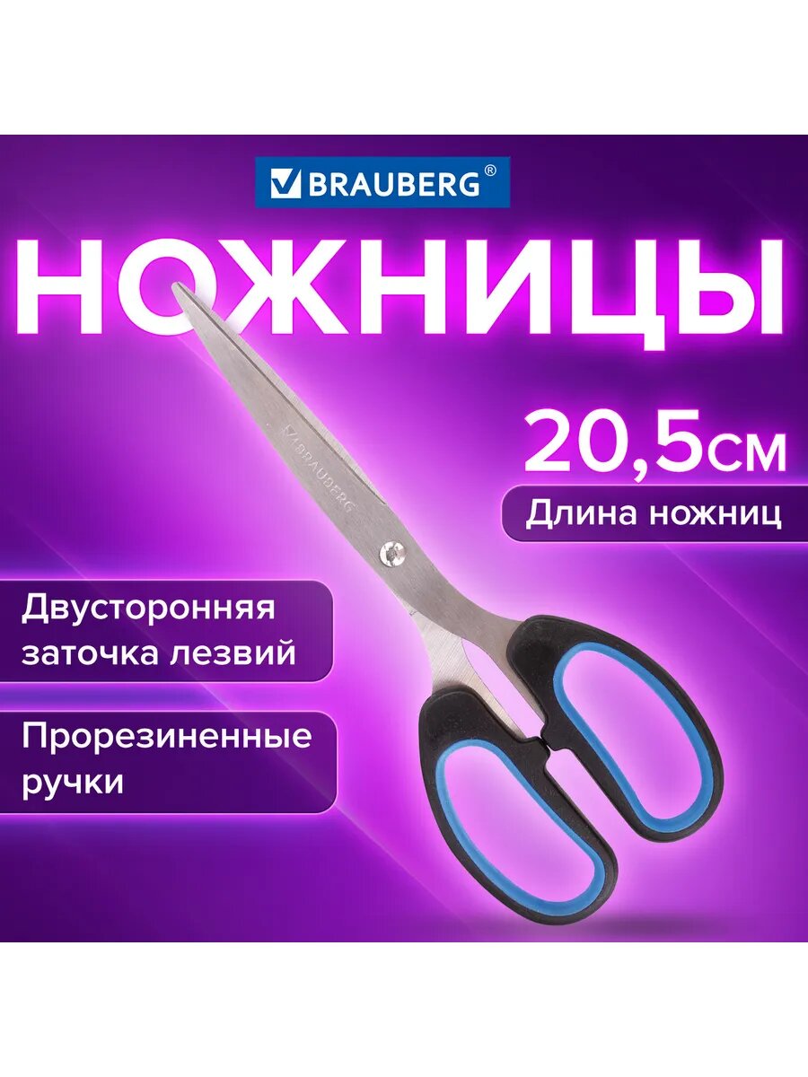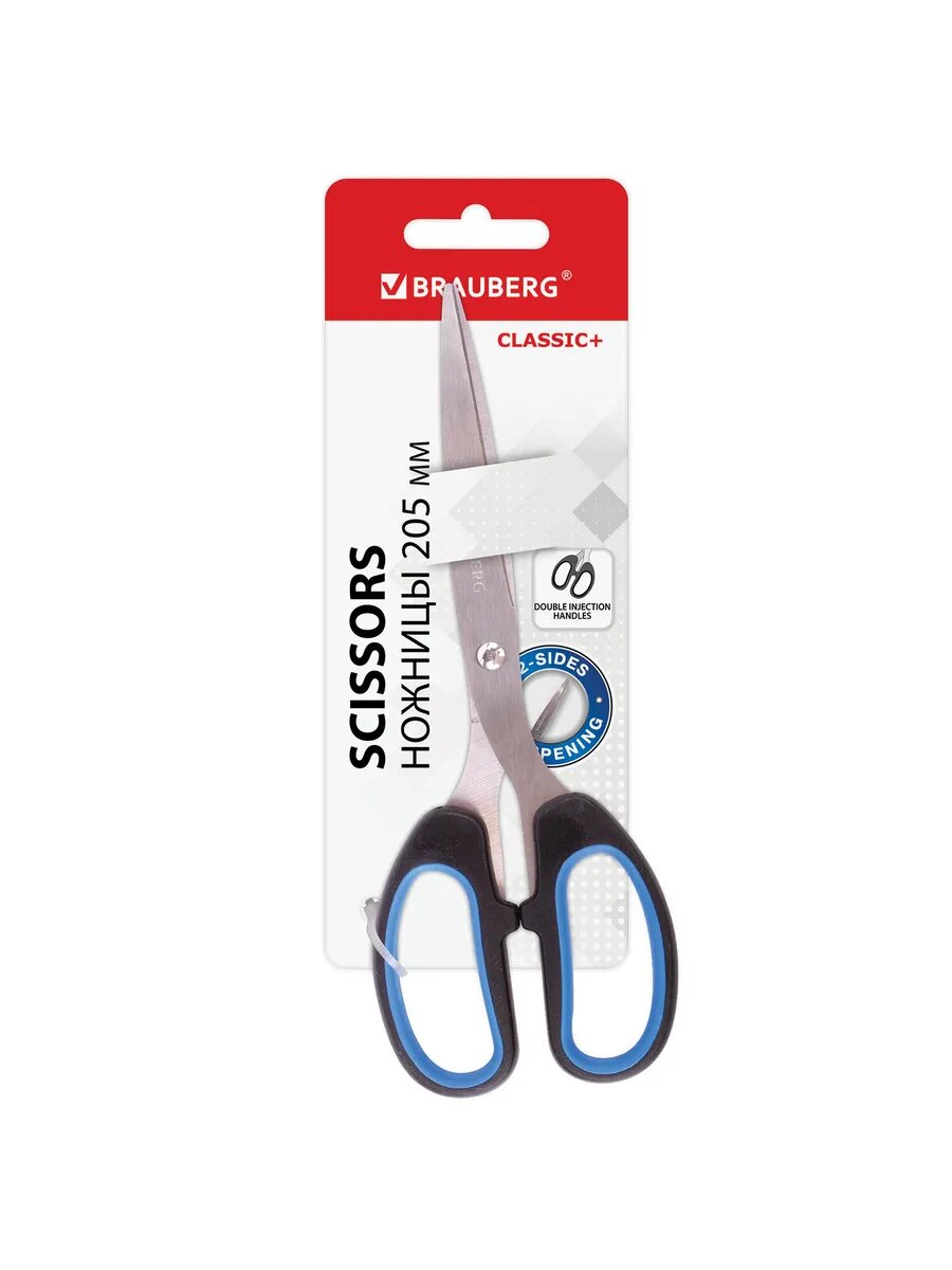 Ножницы BRAUBERG "Classic+", комплект 24 шт., 205 мм, черно-синие, классической формы, резиновые вставки, 236449