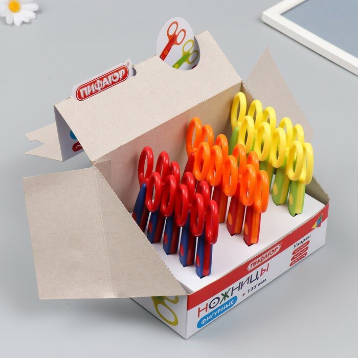 Ножницы пифагор, 135 мм, фигурное лезвие, ассорти, в дисплее, 230938 интересное: