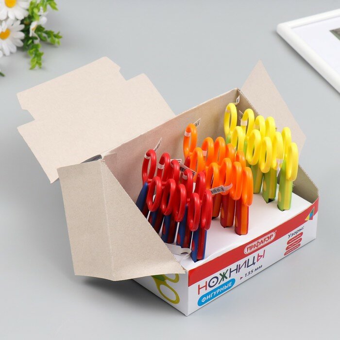 Ножницы пифагор, 135 мм, фигурное лезвие, ассорти, в дисплее, 230938, 15 шт, 230938 интересное: