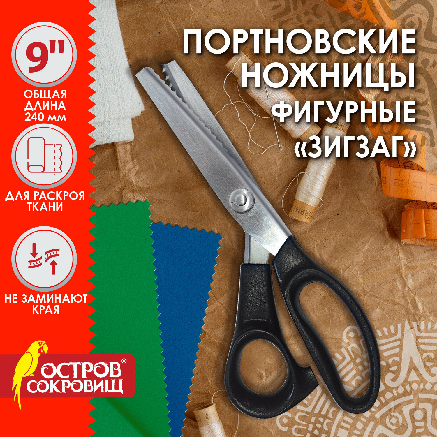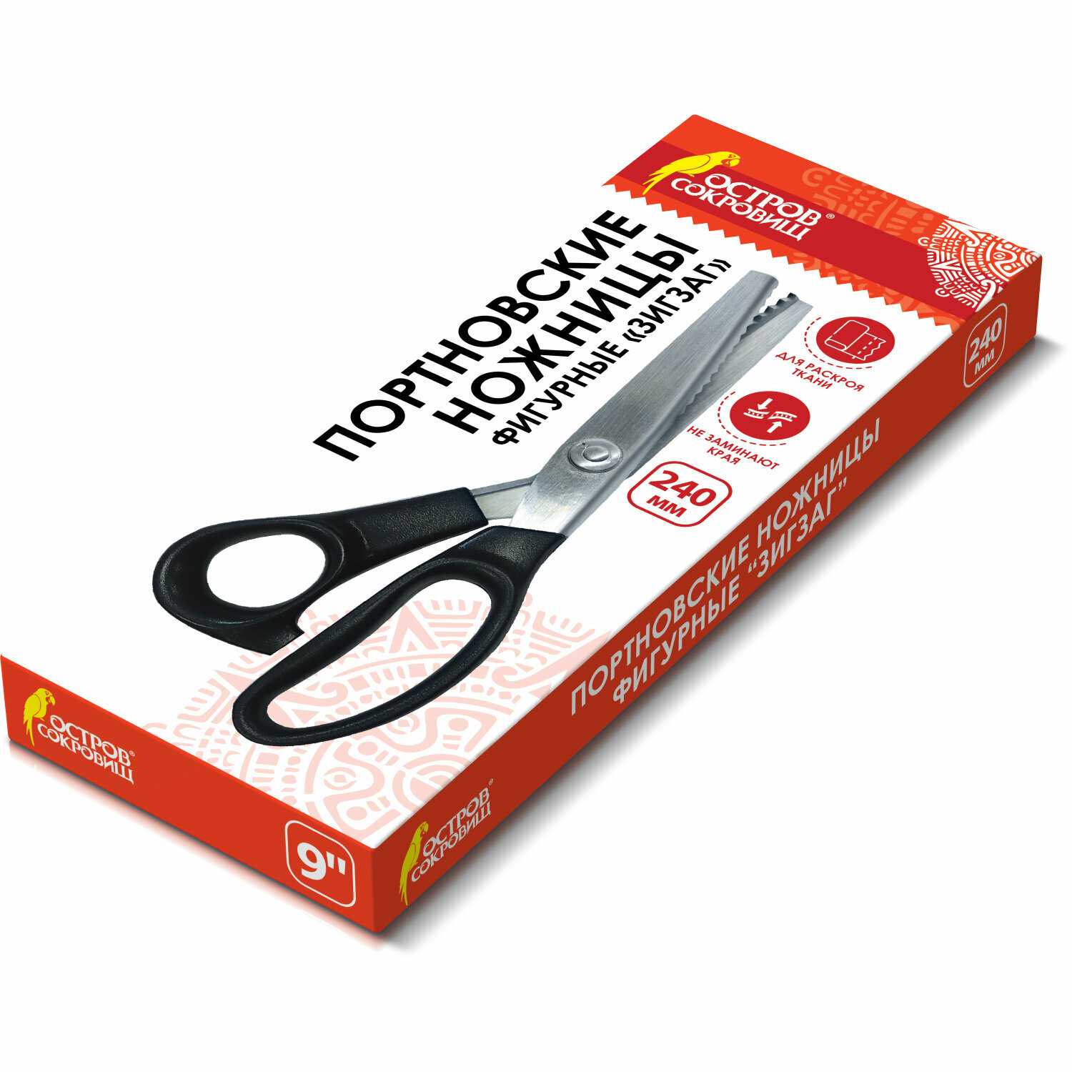 Ножницы портновские фигурные зигзаг 240 мм, черные, пластиковые ручки, остров сокровищ, 665600 интересное: