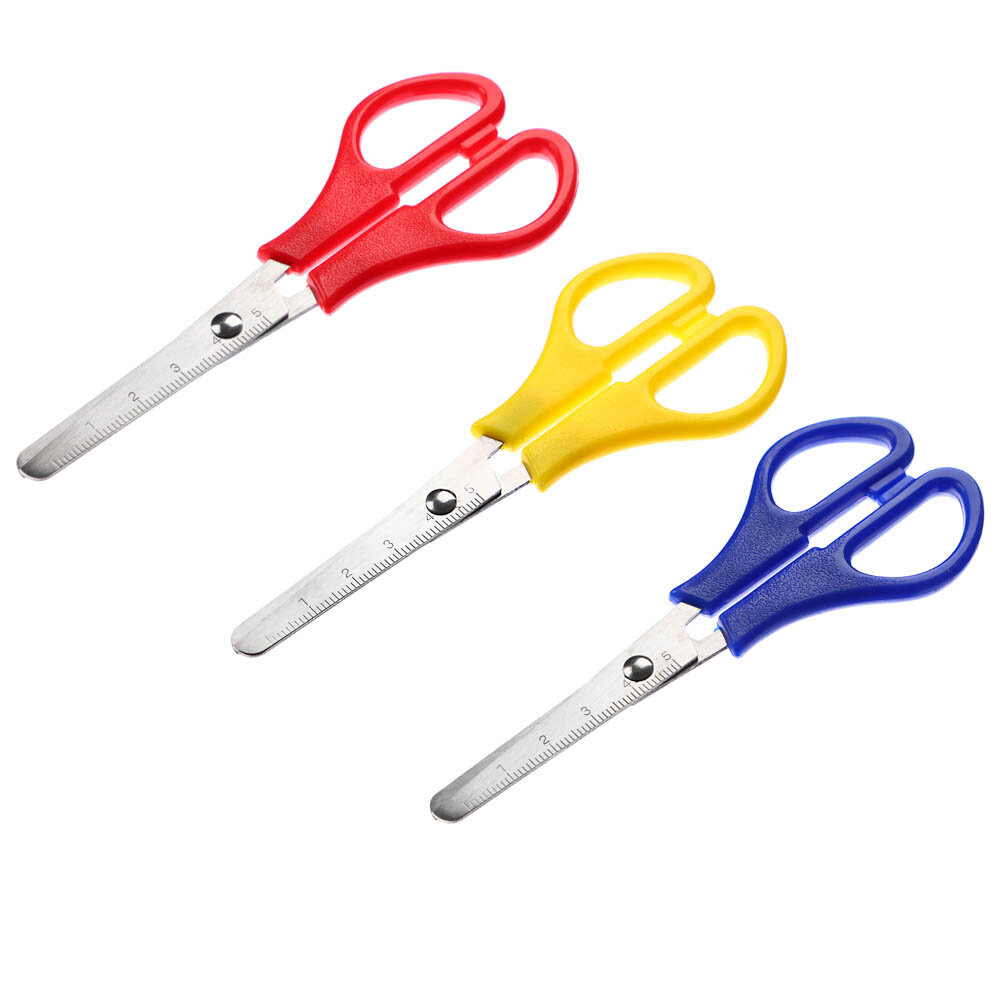 10 Ножниц канцелярских 13 см, пластиковые ручки, закруглённые концы с линейкой интересное: