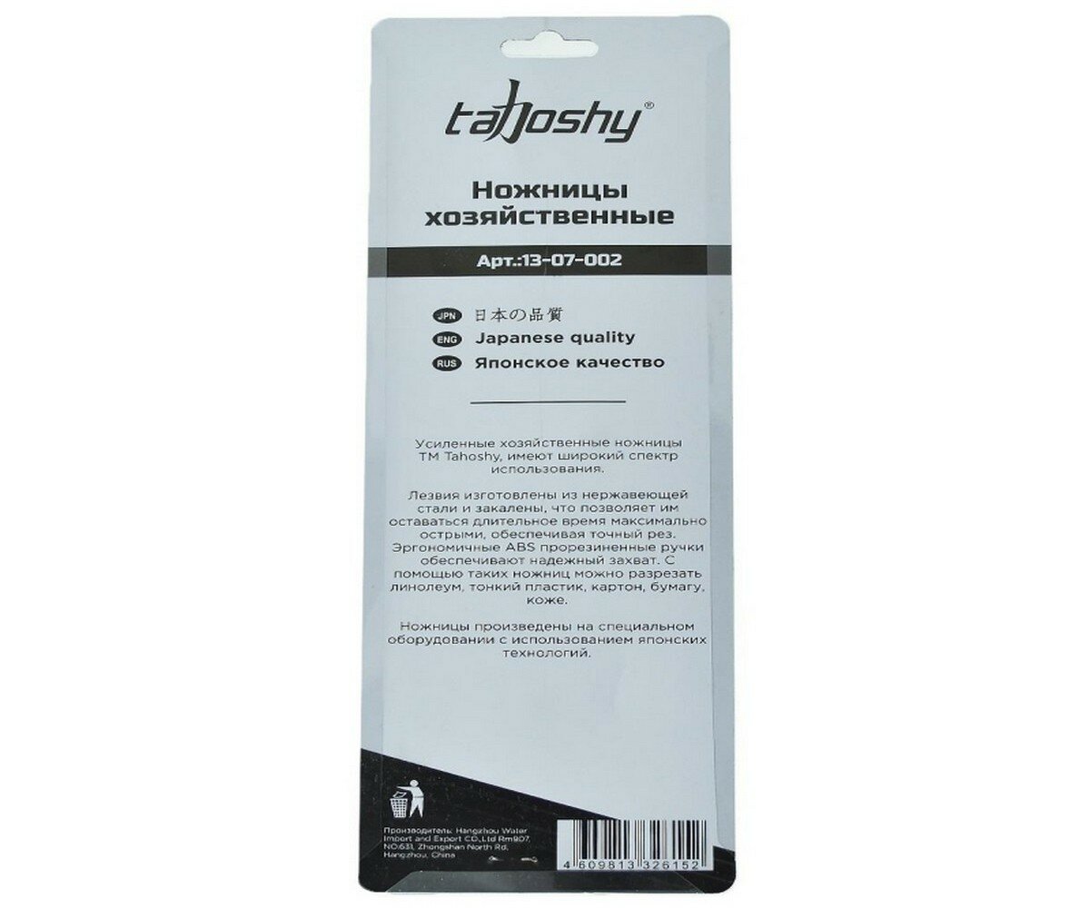 Ниже Вы можете прочитать отзывы на Ножницы хозяйственные Tahoshy, ABS прорезиненная ручка, 250 мм (13-07-002), ознакомится с подробными характеристиками, посмотреть интересные обзоры и фотографии на Ножницы хозяйственные Tahoshy, ABS прорезиненная ручка, 250 мм (13-07-002).