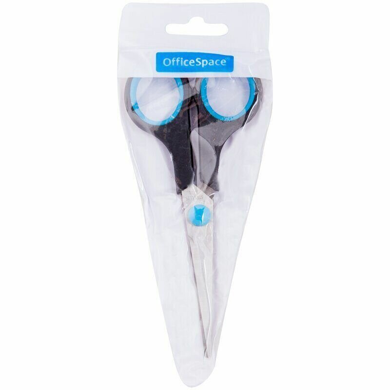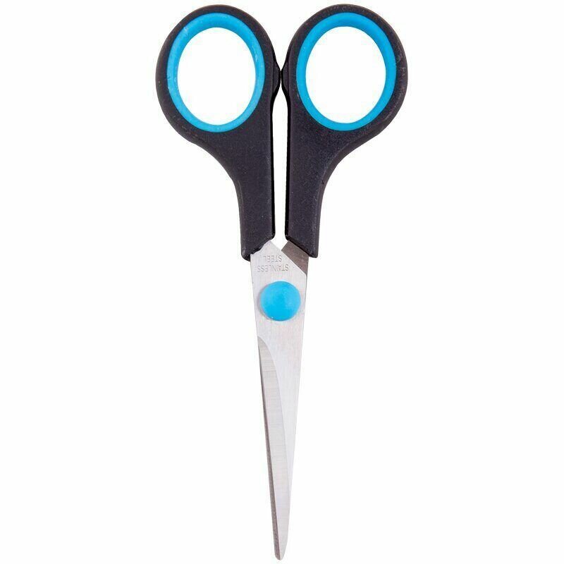 Купить Ножницы 14см пластиковые ручки, чёрные с синими вставками