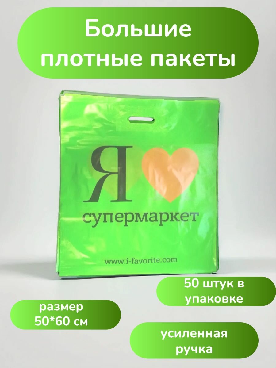 Пакет с прорубной ручкой Я люблю супермаркет 50*60см. 50шт интересное: