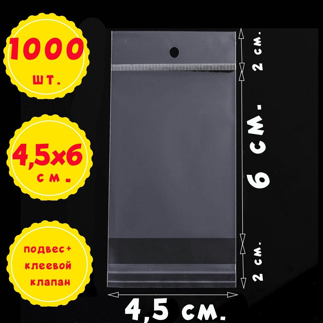Сохранить1000 пакетов 4,5х6+4 см с прозрачным подвесом и клеевым клапаном упаковочные интересное: