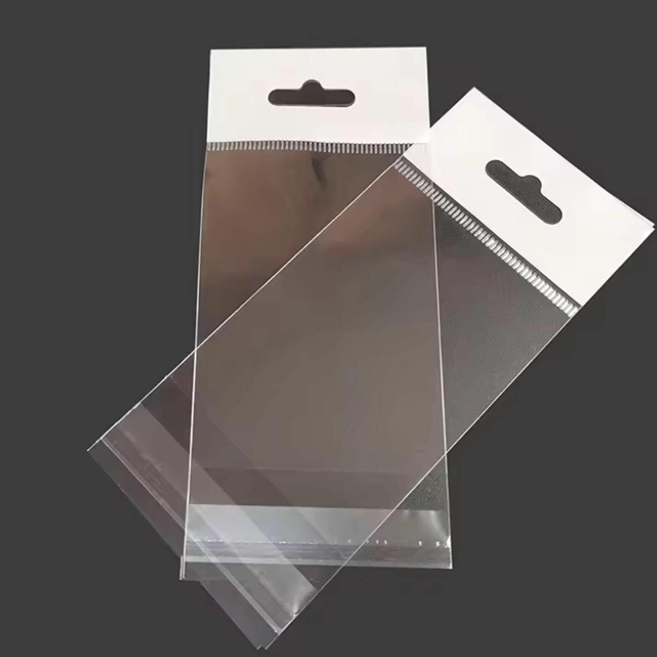 500 пакетов 7х10+5 см с белым подвесом и клеевым клапаном для упаковки из прозрачной пленки бопп