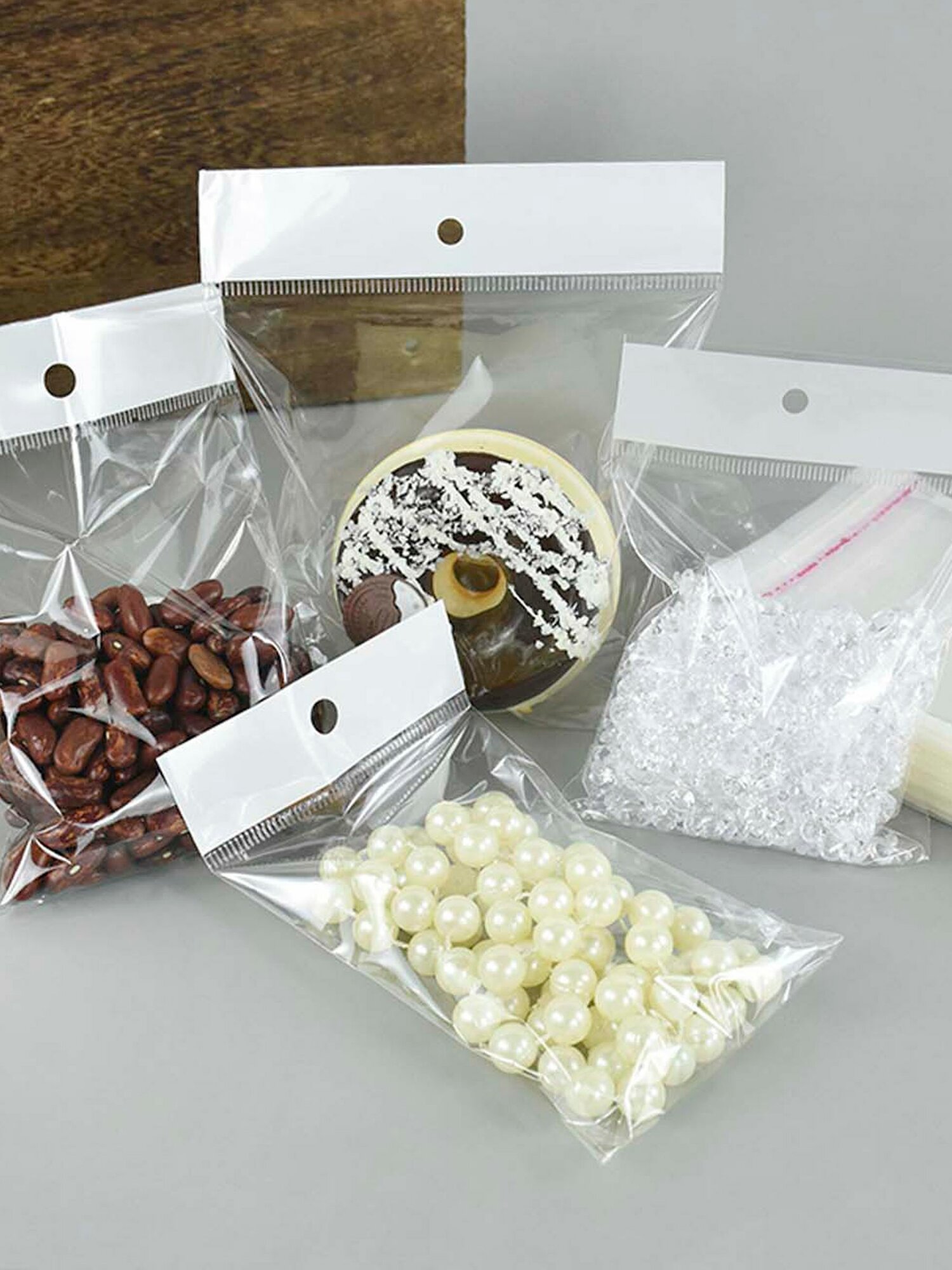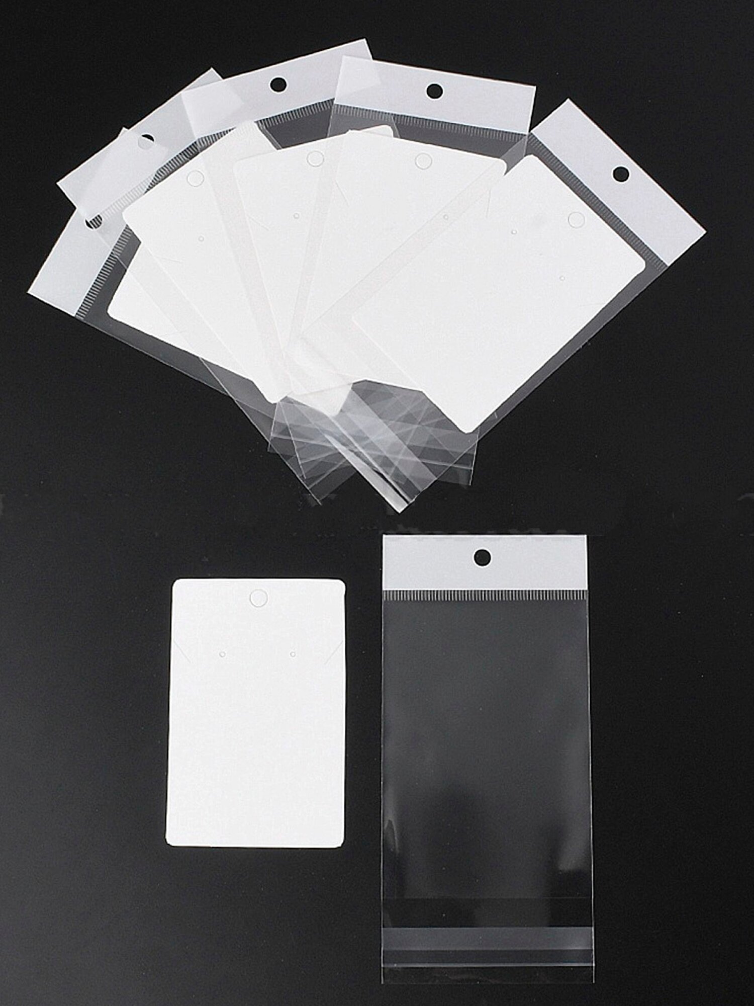 500 пакетов 7х9+4 см с белым подвесом и клеевым клапаном для упаковки из прозрачной пленки бопп
