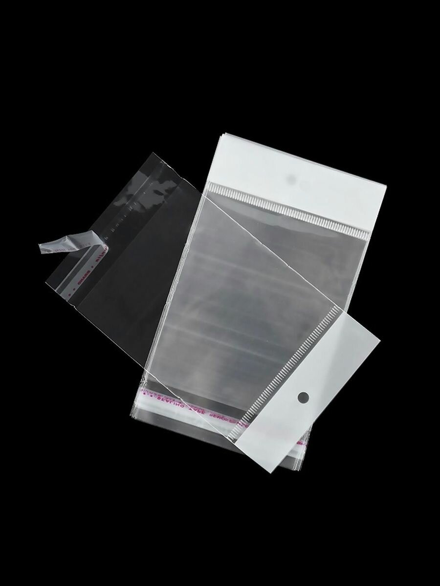 500 пакетов 7х7,5+5 см с прозрачным подвесом и клеевым клапаном упаковочные