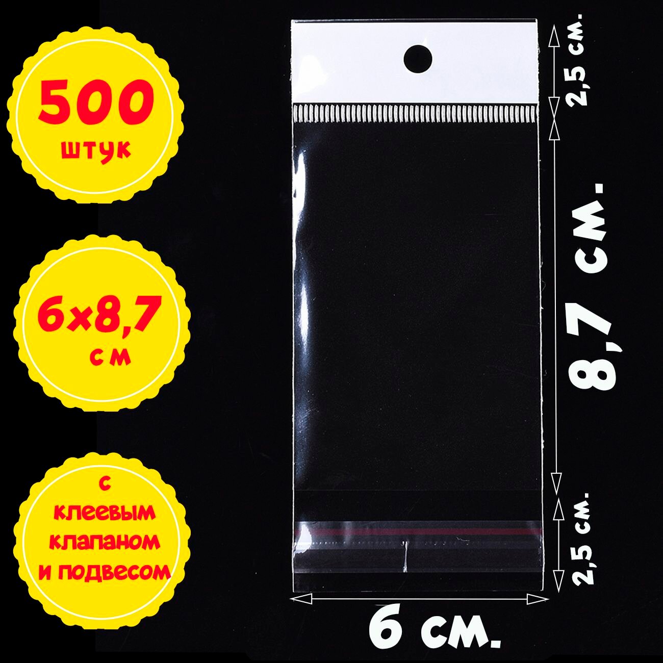 Сохранить500 пакетов 6х8.7+5 см с клеевым клапаном и белым подвесом упаковочные интересное: