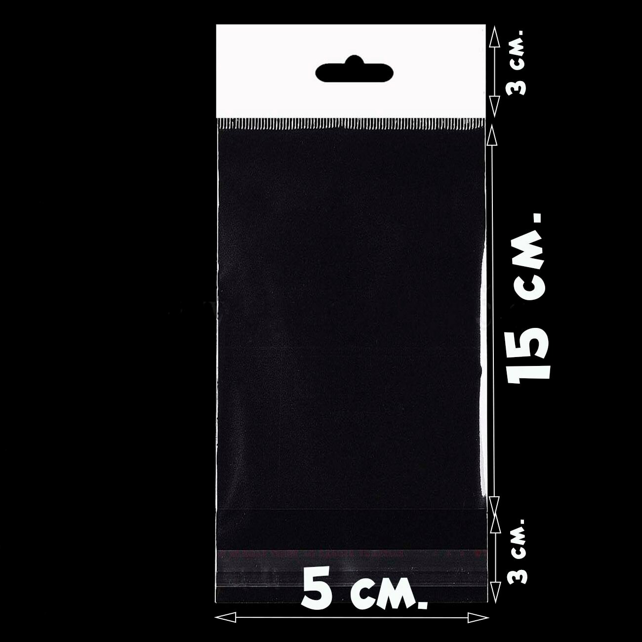 500 пакетов 5х21+5 см с прозрачным подвесом и клеевым клапаном упаковочные