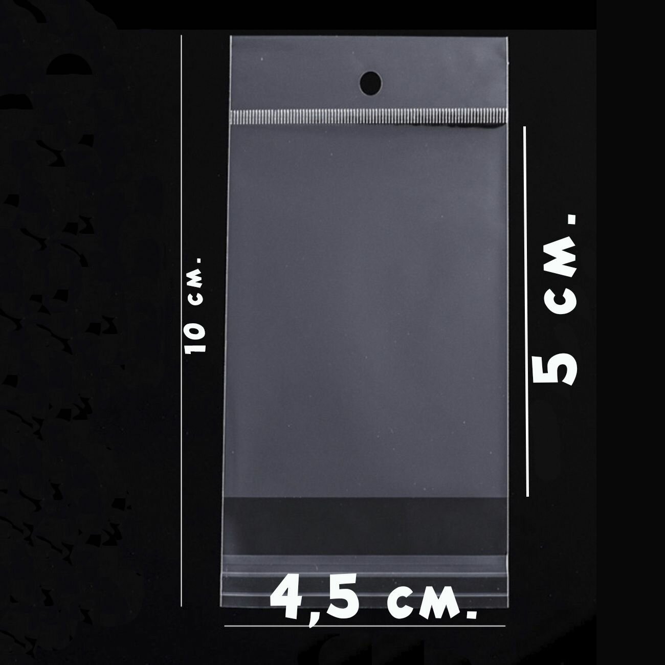 Купить 1000 пакетов 4,5х5+4 см с клеевым клапаном и прозрачным подвесом упаковочные