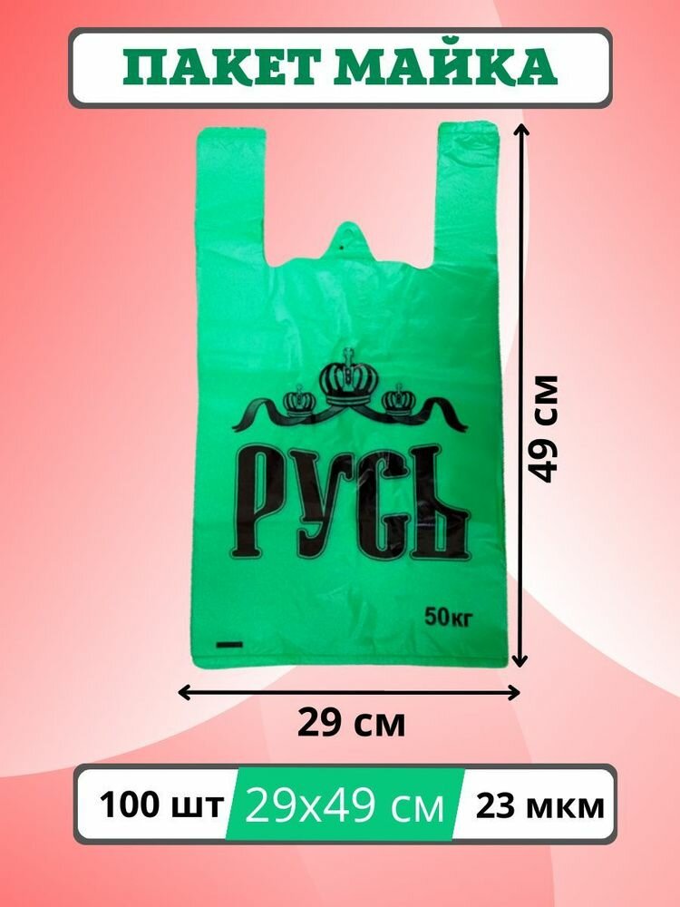 Пакеты майка с ручками "Русь" 100шт зеленые интересное: