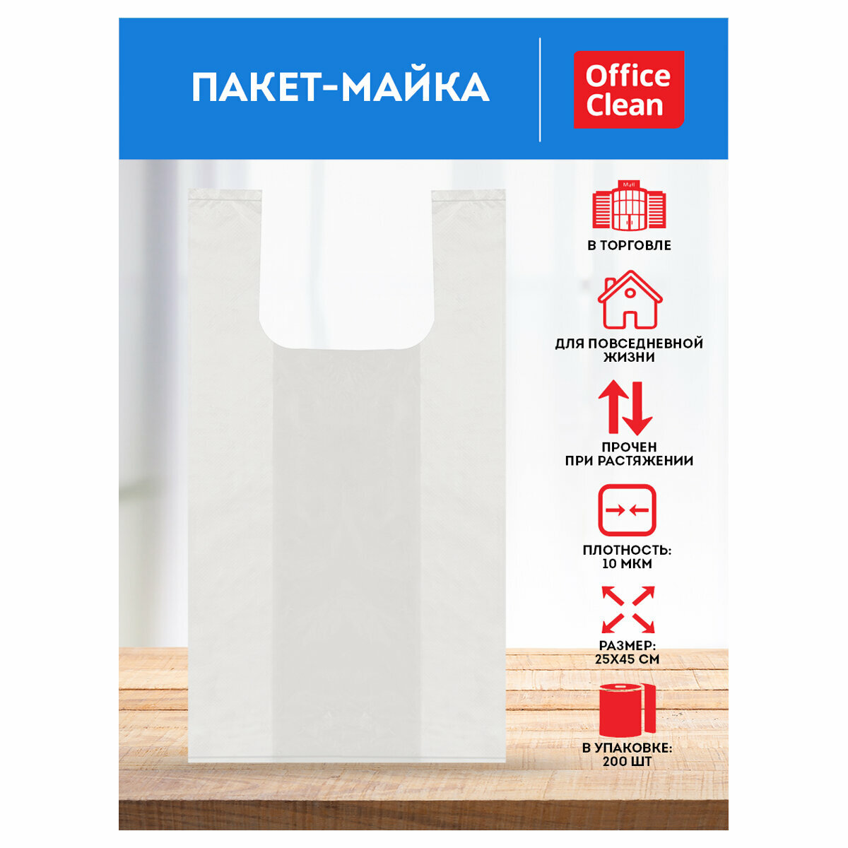 Пакет-майка OfficeClean, ПНД, 25+12*45см, 10мкм, рулон на втулке, 200шт, прозрачный интересное: