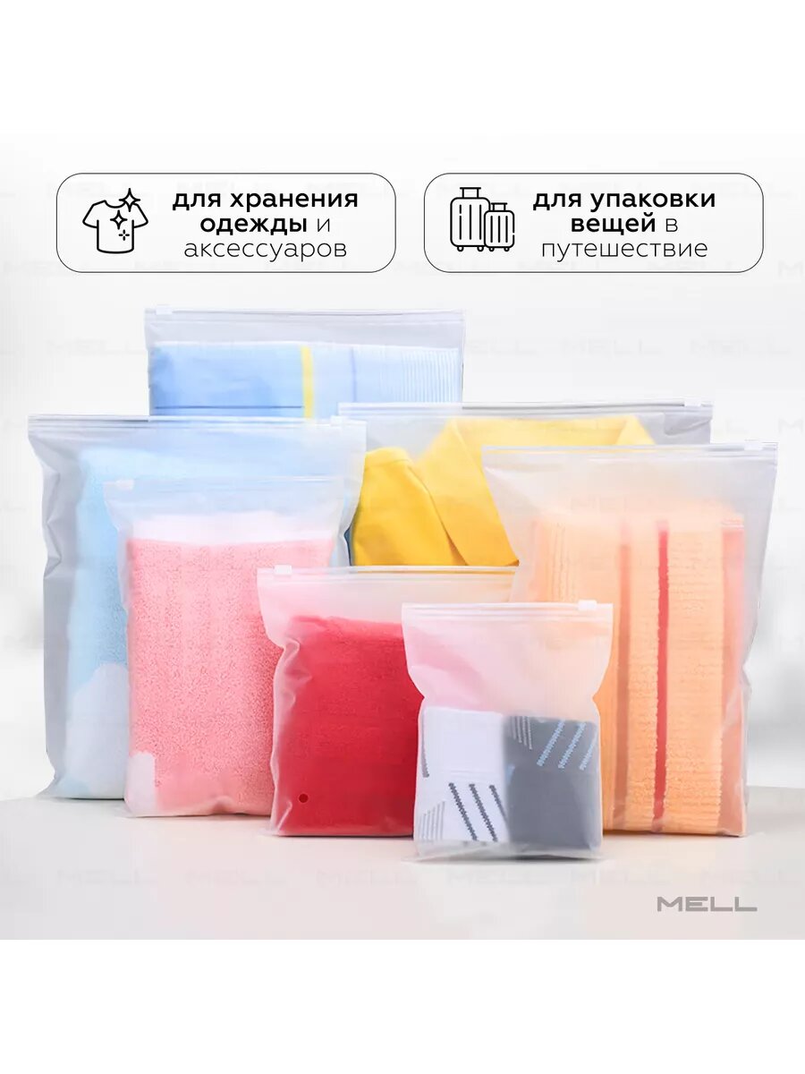 Купить Пакеты для хранения вещей на зип - молнии MELL, набор 10 шт 50х70 см, закрывающиеся на зиплок замок полупрозрачные