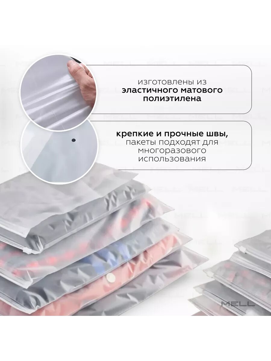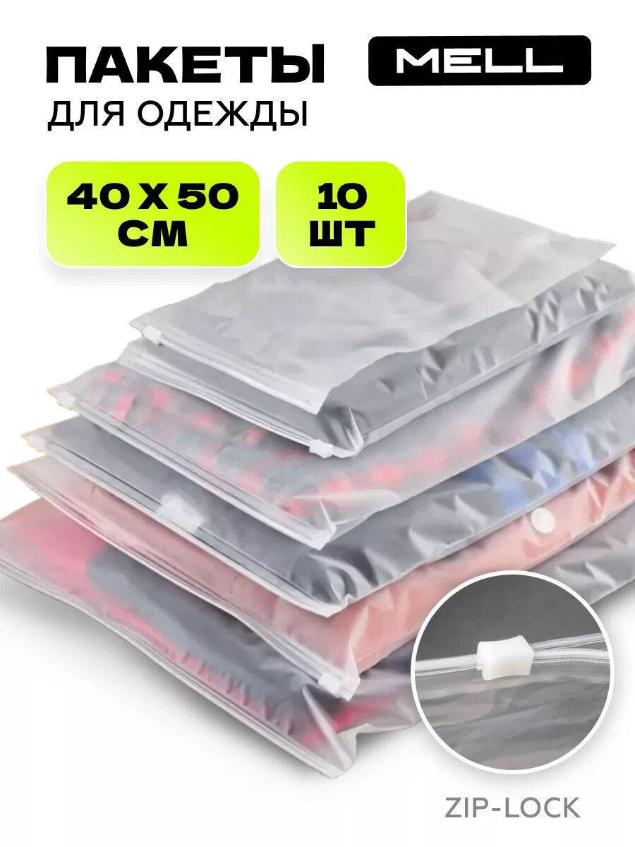 Купить Пакеты для хранения вещей на зип - молнии MELL, набор 10 шт 40х50 см закрывающиеся на зиплок замок полупрозрачные