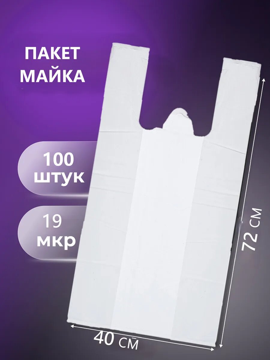 Пакет майка ПНД 40*72 19 мкр, 100шт, цвет белый интересное: