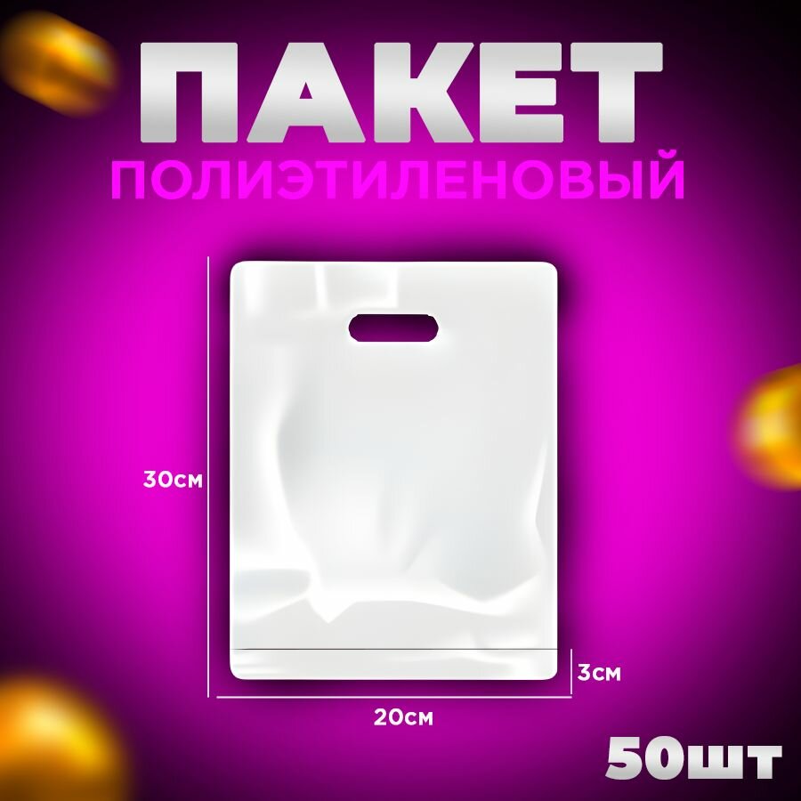 Пакет 20*30+3 дно (см), ПВД с вырубной ручкой, Белый, 80 мкм, 50 шт. интересное: