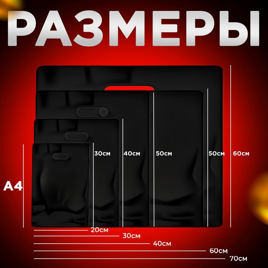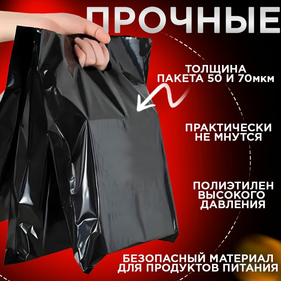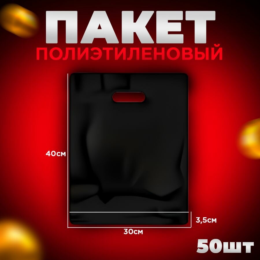 Пакет 30*40+3 дно (см), Черный, 50 мкм, с вырубной укрепленной ручкой, 50 шт. интересное: