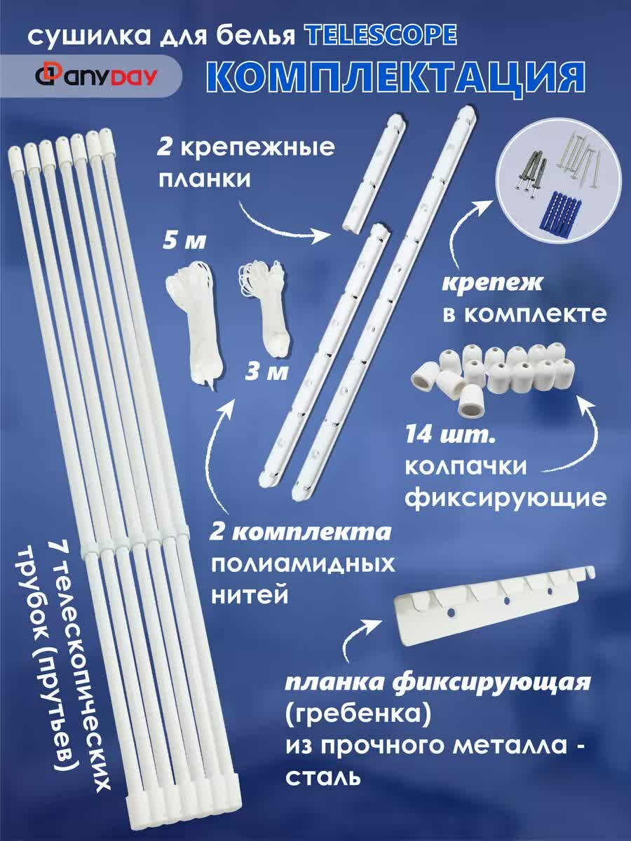 СохранитьСушилка для белья потолочная AnyDay Telescop 1,7-3,0 метра, 7 перекладин, белый интересное: