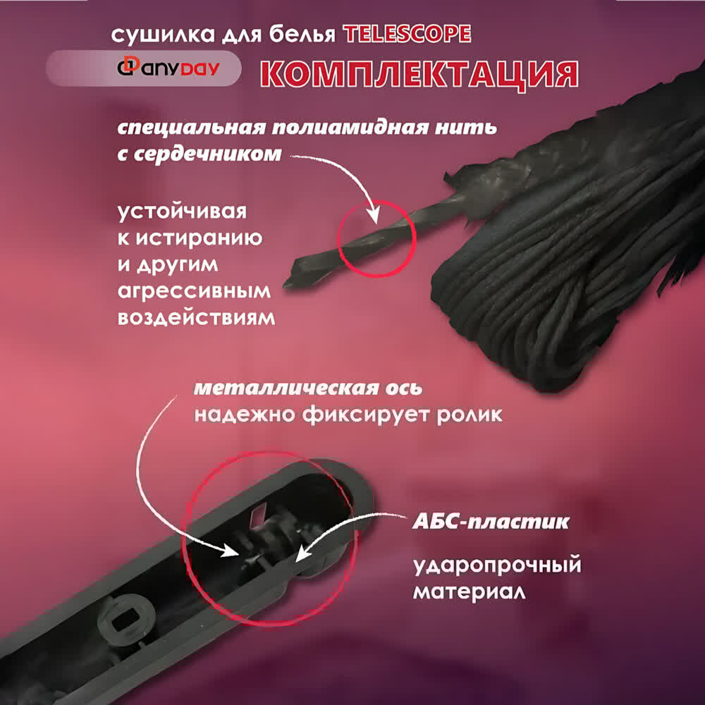 СохранитьСушилка для белья потолочная AnyDay Telescop 1,0-1,8 метра, 7 перекладин, черный интересное: