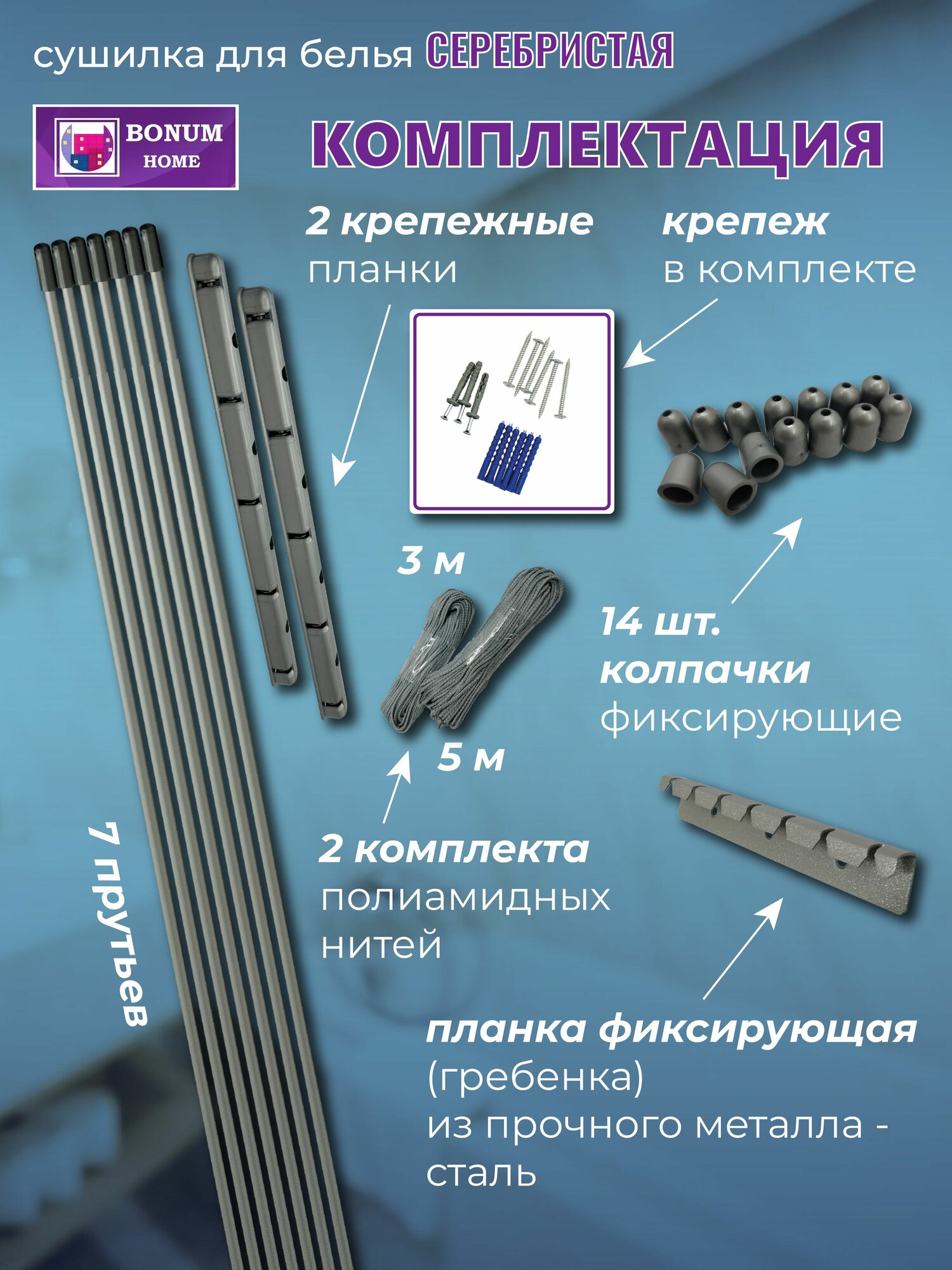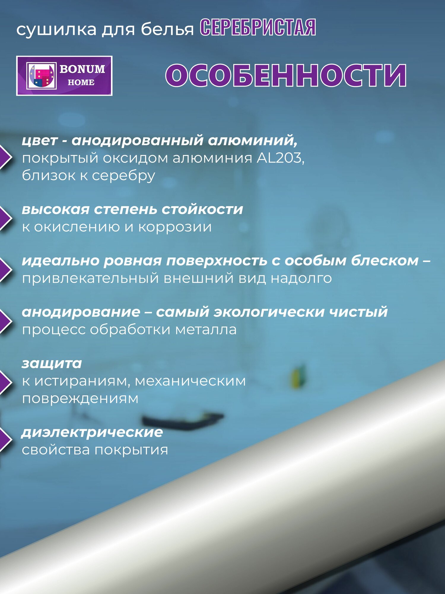 Сушилка для белья серебряная 100см.7 прутьев, потолочная, навесная, алюминиевая. Беларусь.