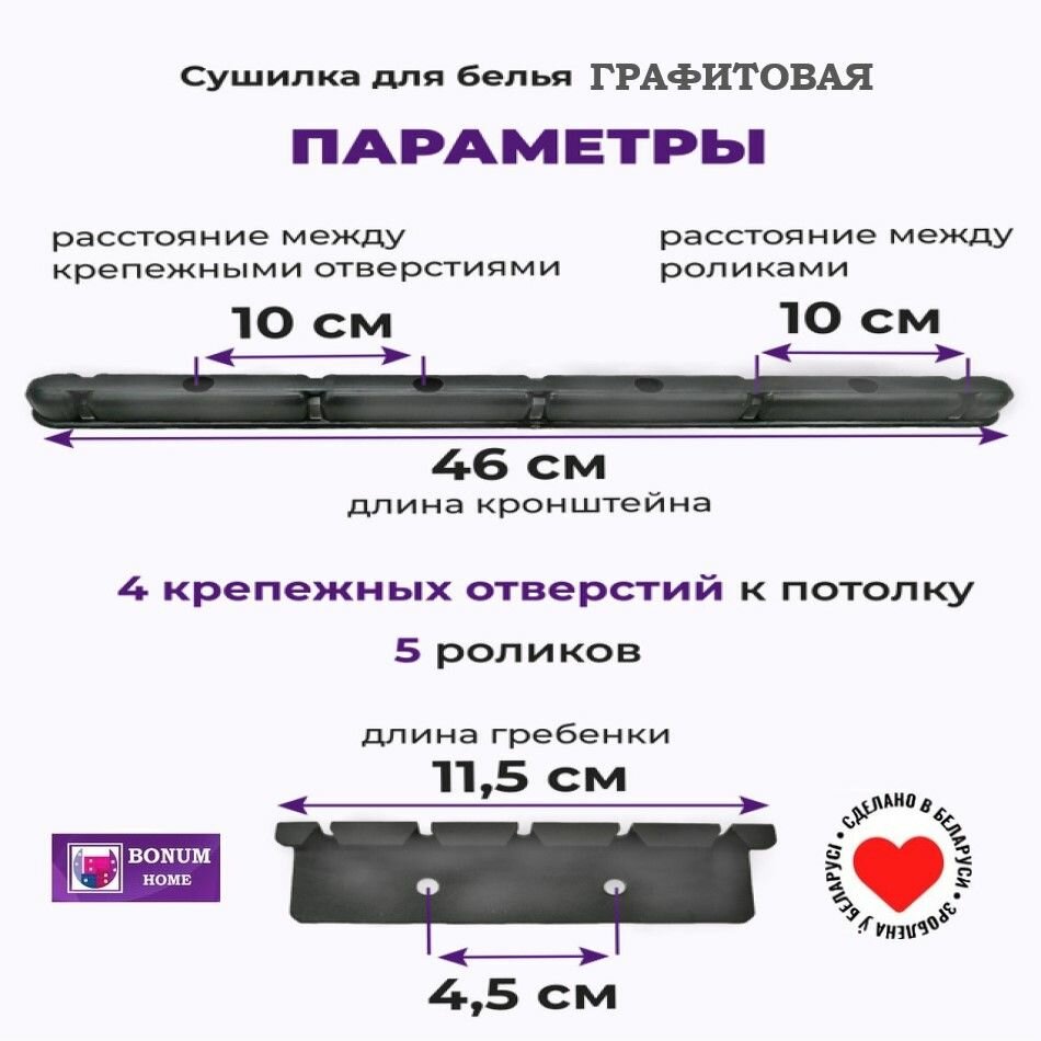 СохранитьСушилка для белья графит, потолочная, навесная, алюминиевая-1м,5 прутьев. Беларусь интересное: