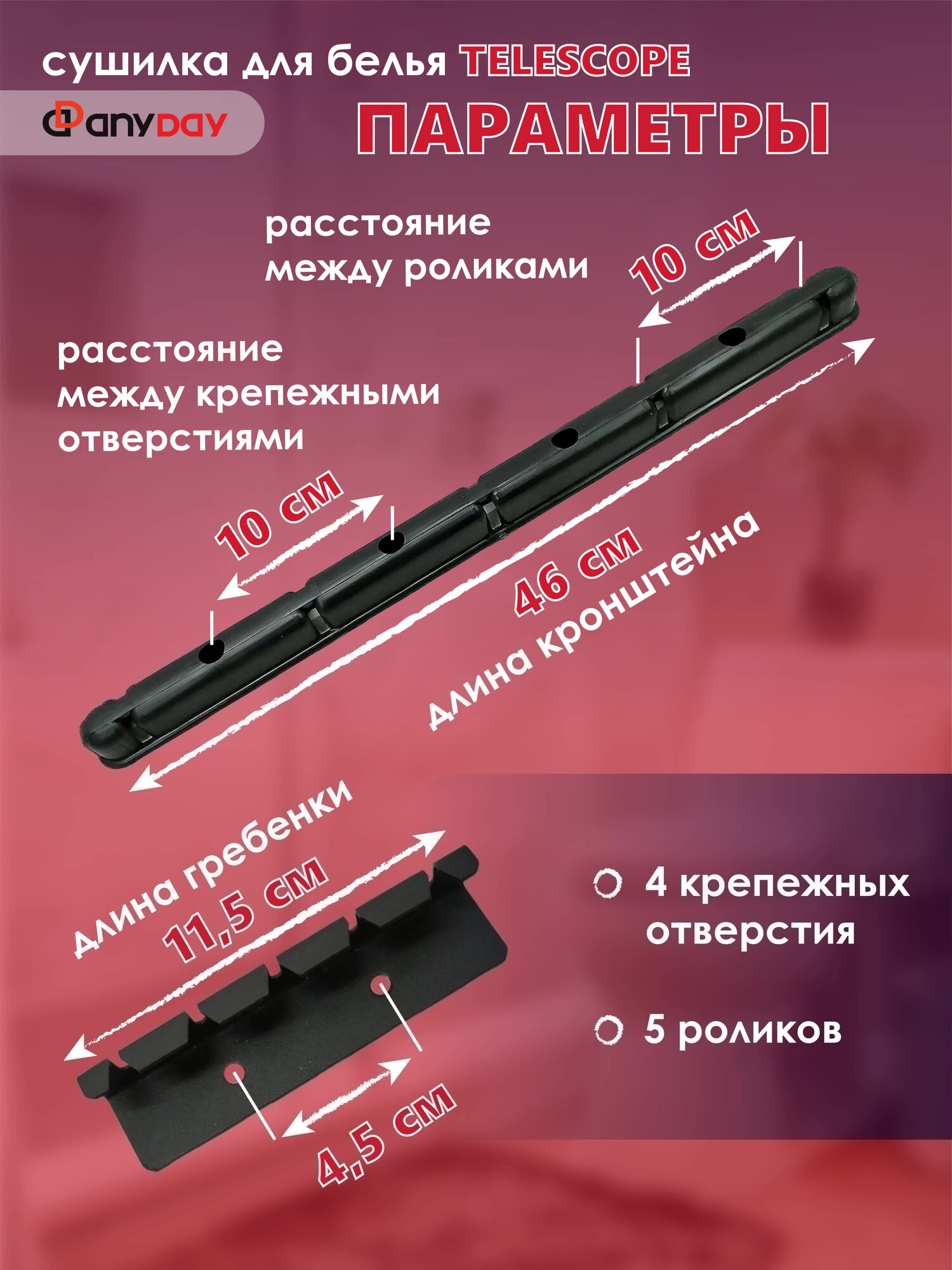 СохранитьСушилка для белья потолочная AnyDay Telescop 1,2-2,0 метра, 5 перекладин, черный интересное:
