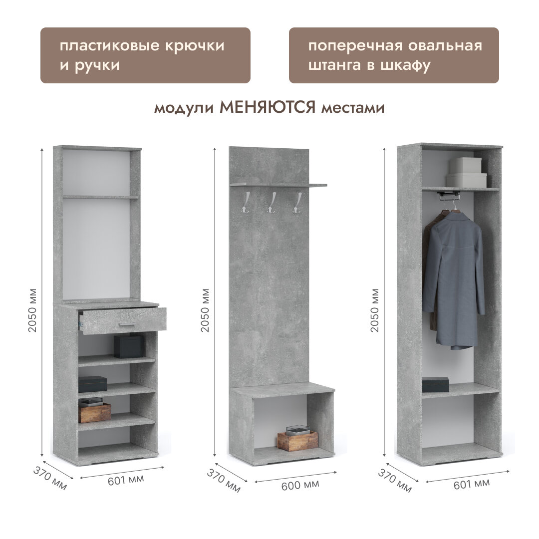 Комплект мебели для прихожей Флэш (comp.5) Браш Графит/Дуб Крафт
