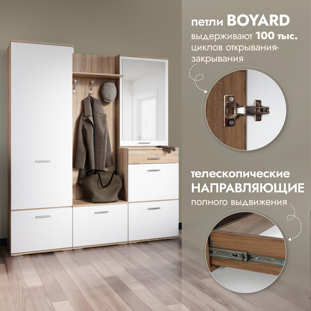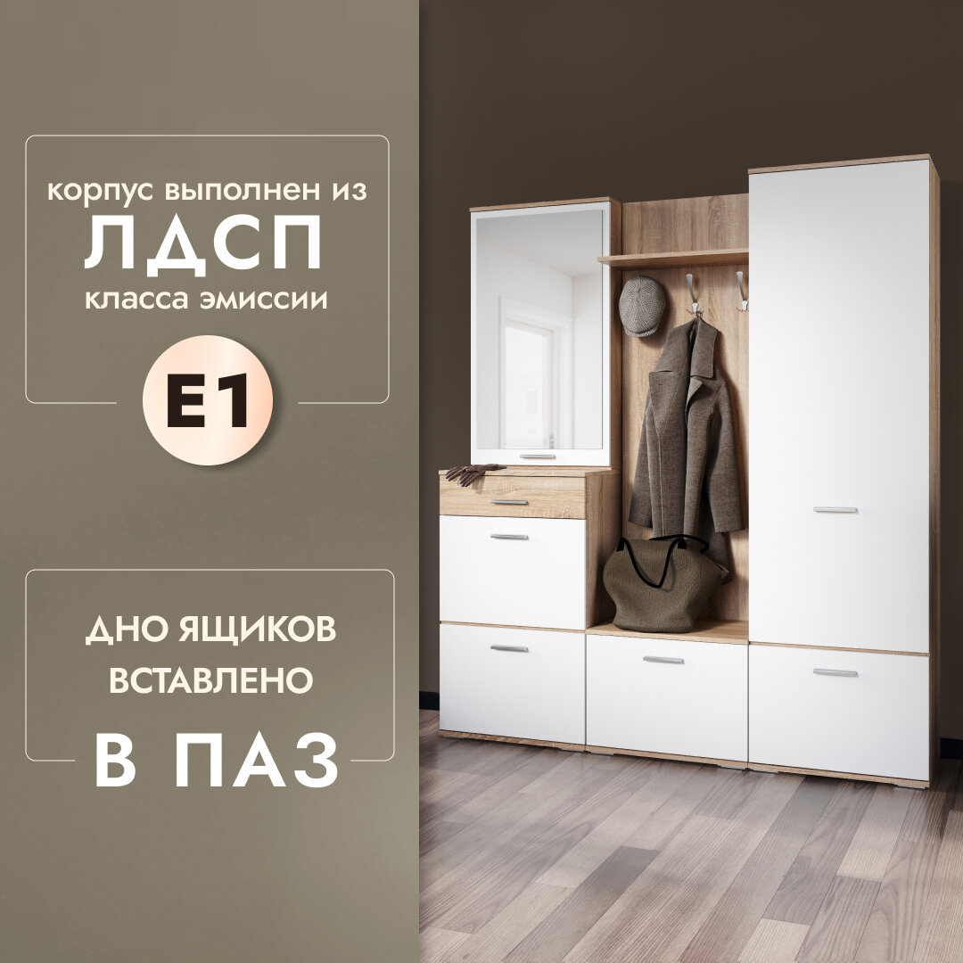 Прихожая Империал "Виола", сонома, ЛДСП, 180 см x 37 см х 205 см, белая интересное: