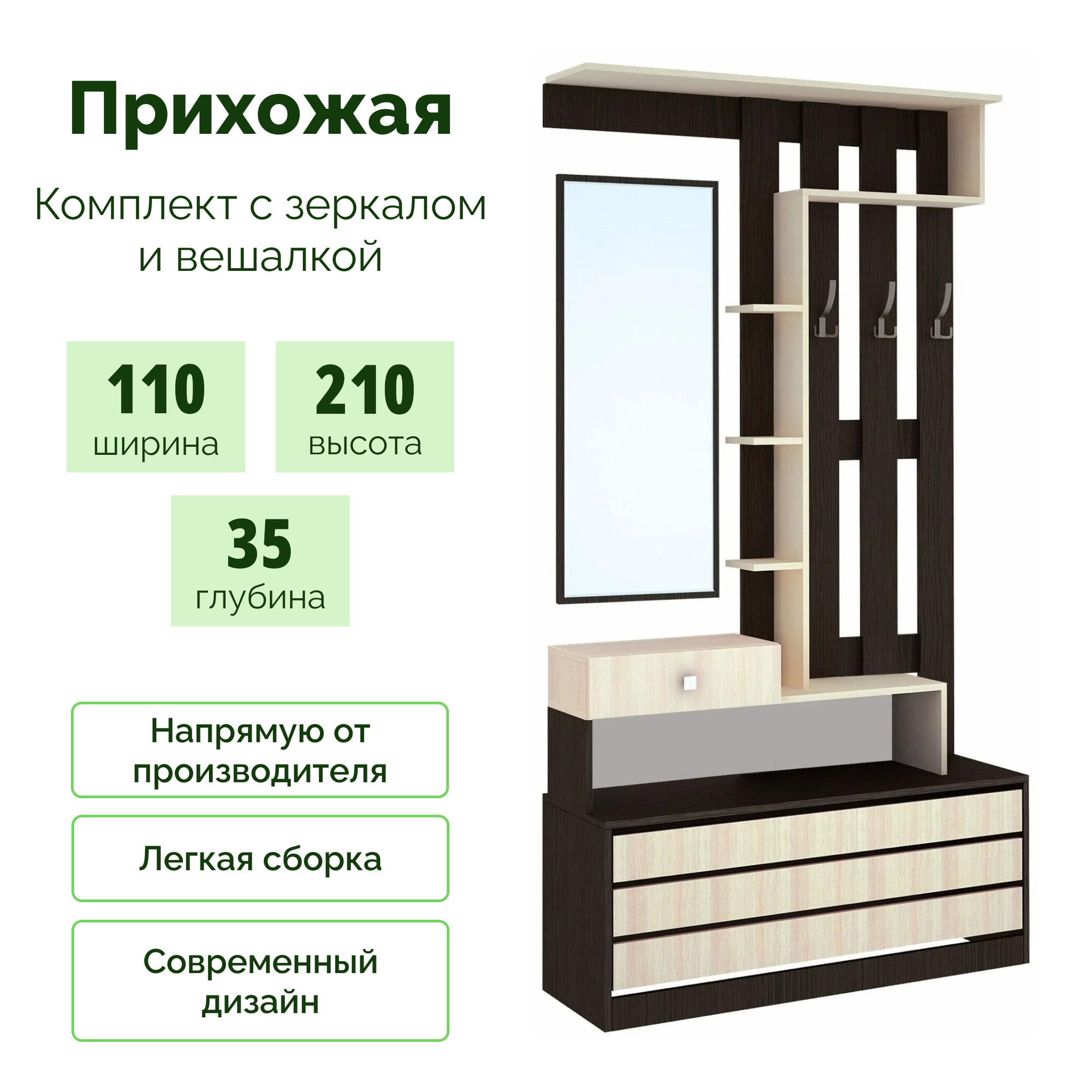 Прихожая комплект с зеркалом и вешалкой Венге/дуб молочный 110см - ТК0099 интересное:
