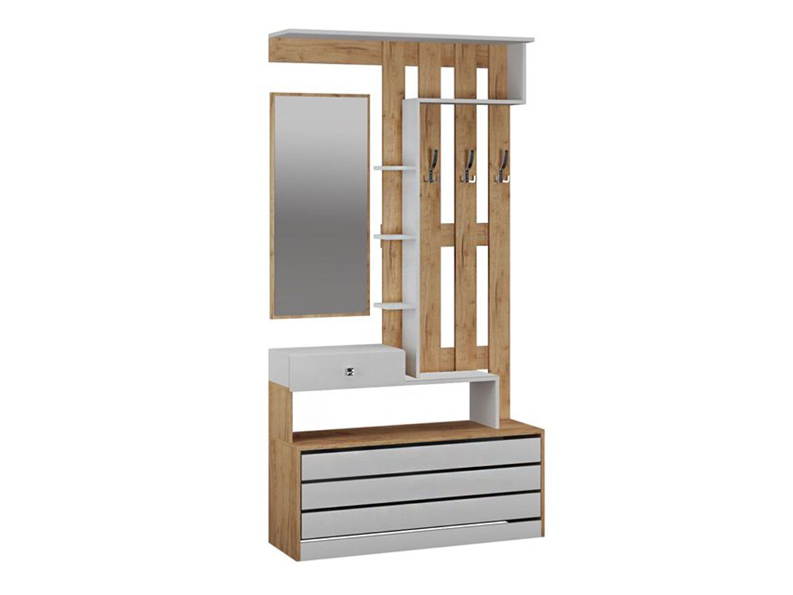Прихожая, размер: 2100x1100x350 мм. Корпус: ЛДСП - ясень шимо, фасад: ЛДСП - дуб сонома.