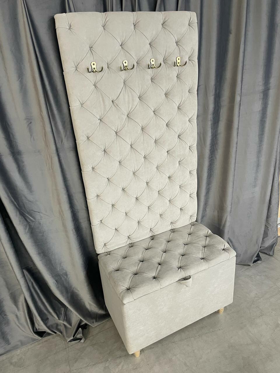 Банкетка ЗЕБОМЕБЕЛЬ, с вешалкой, МДФ, обивка из микровелюра, серая интересное: