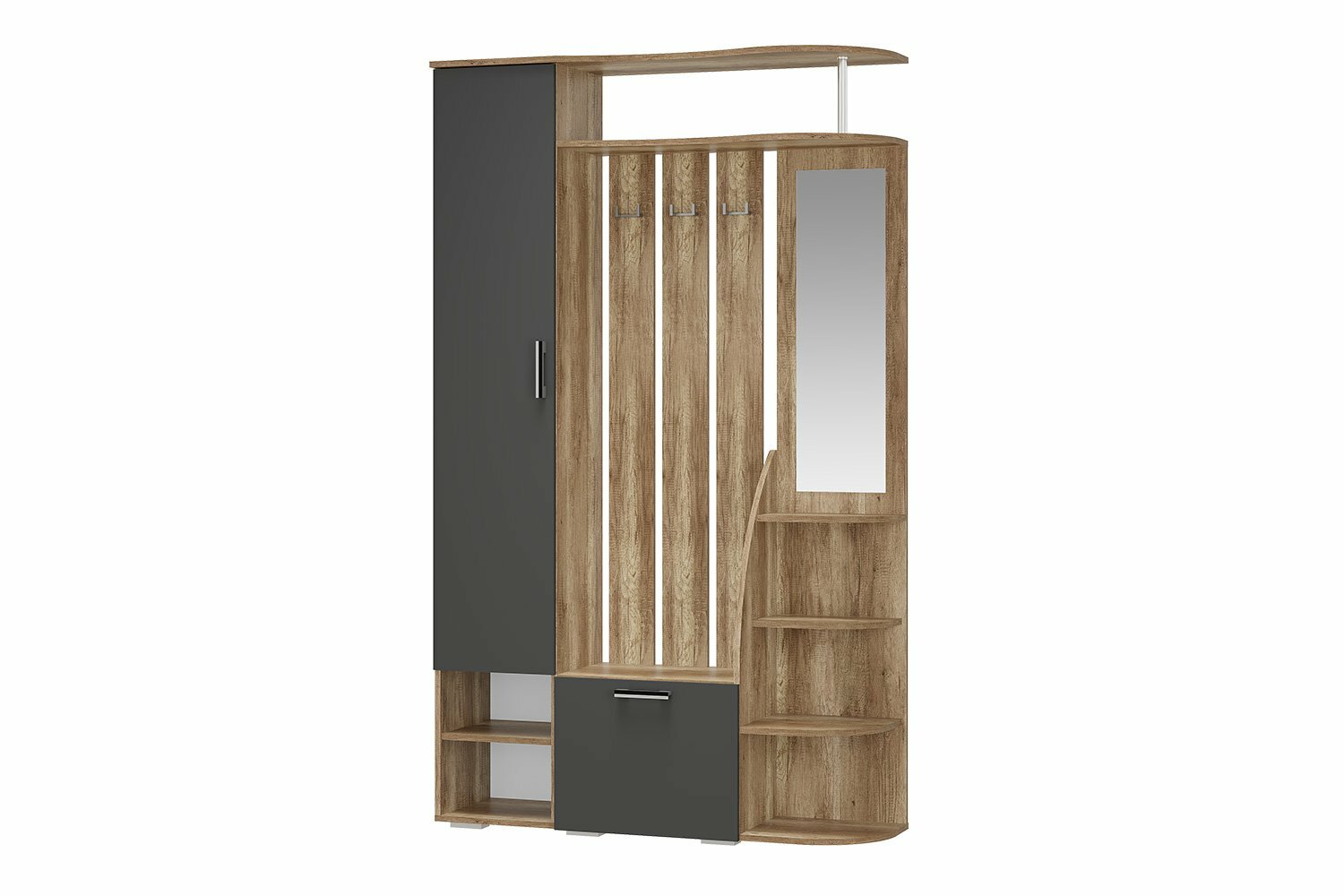 Купить Прихожая Hoff Агата, прямая, напольная, ЛДСП/зеркало, 120,2х201,8х35,6 см, цвет дуб Каньон, графит