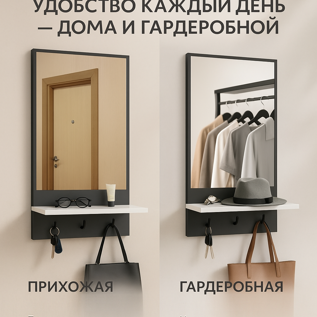 Прихожая комплект в стиле ЛОФТ с зеркалом, Обувница, Вешалка, Зеркало с полочкой Ключница Серая интересное: