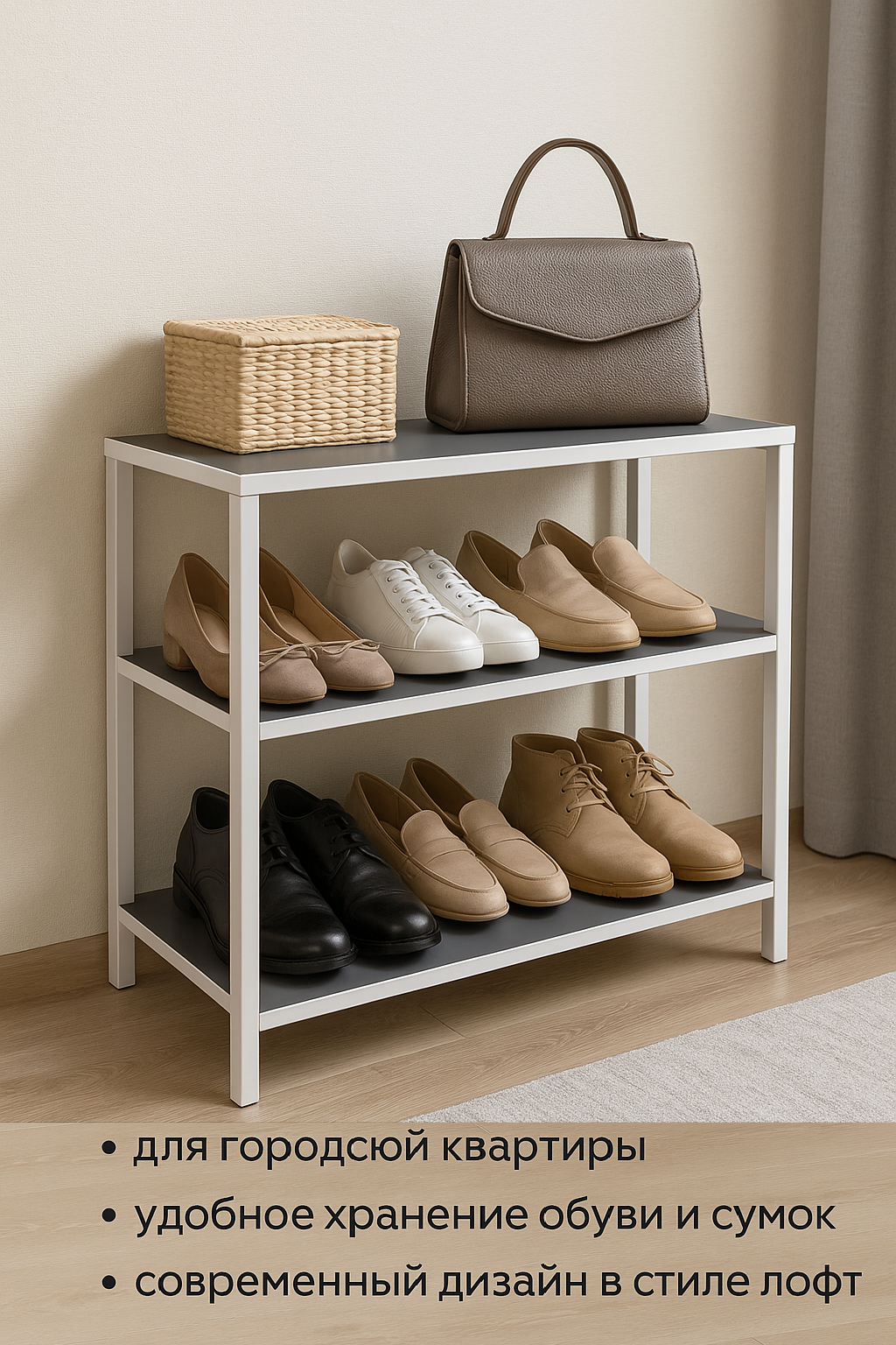 Купить Прихожая комплект в стиле ЛОФТ с зеркалом, Обувница, Вешалка, Зеркало с полочкой Ключница Серая