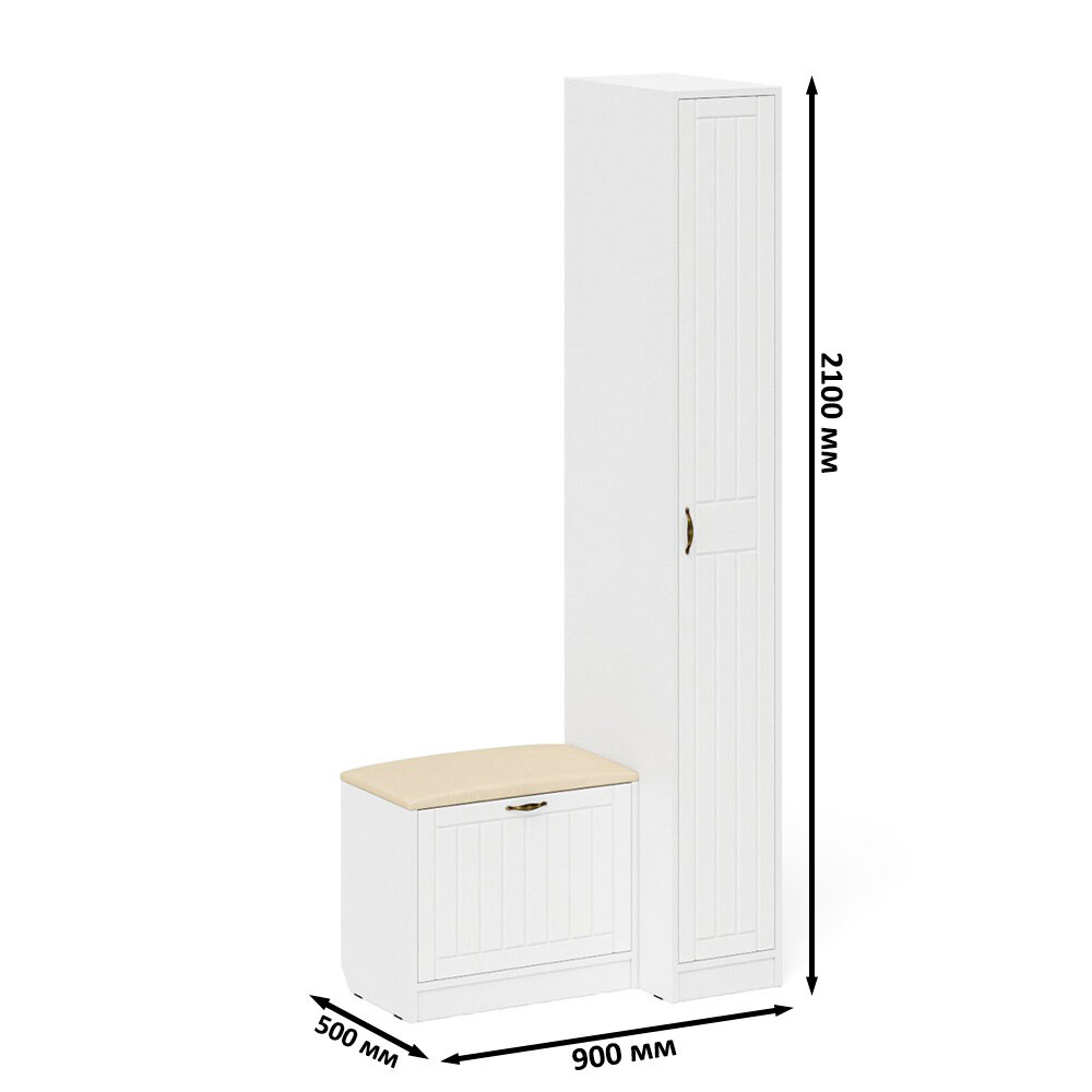 Купить Прихожая Мебельный Двор П-6 Компоновка № 39 белая шагрень/белое дерево прованс, 90х50х210 см