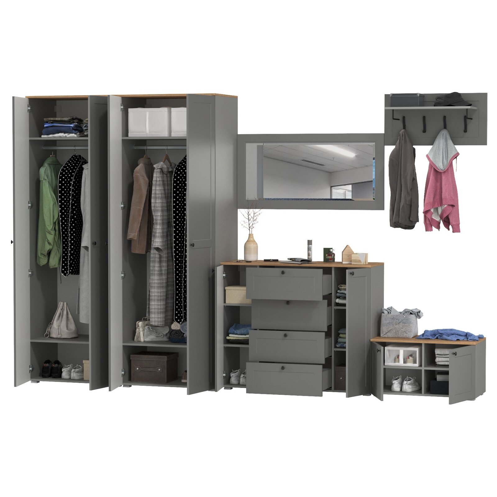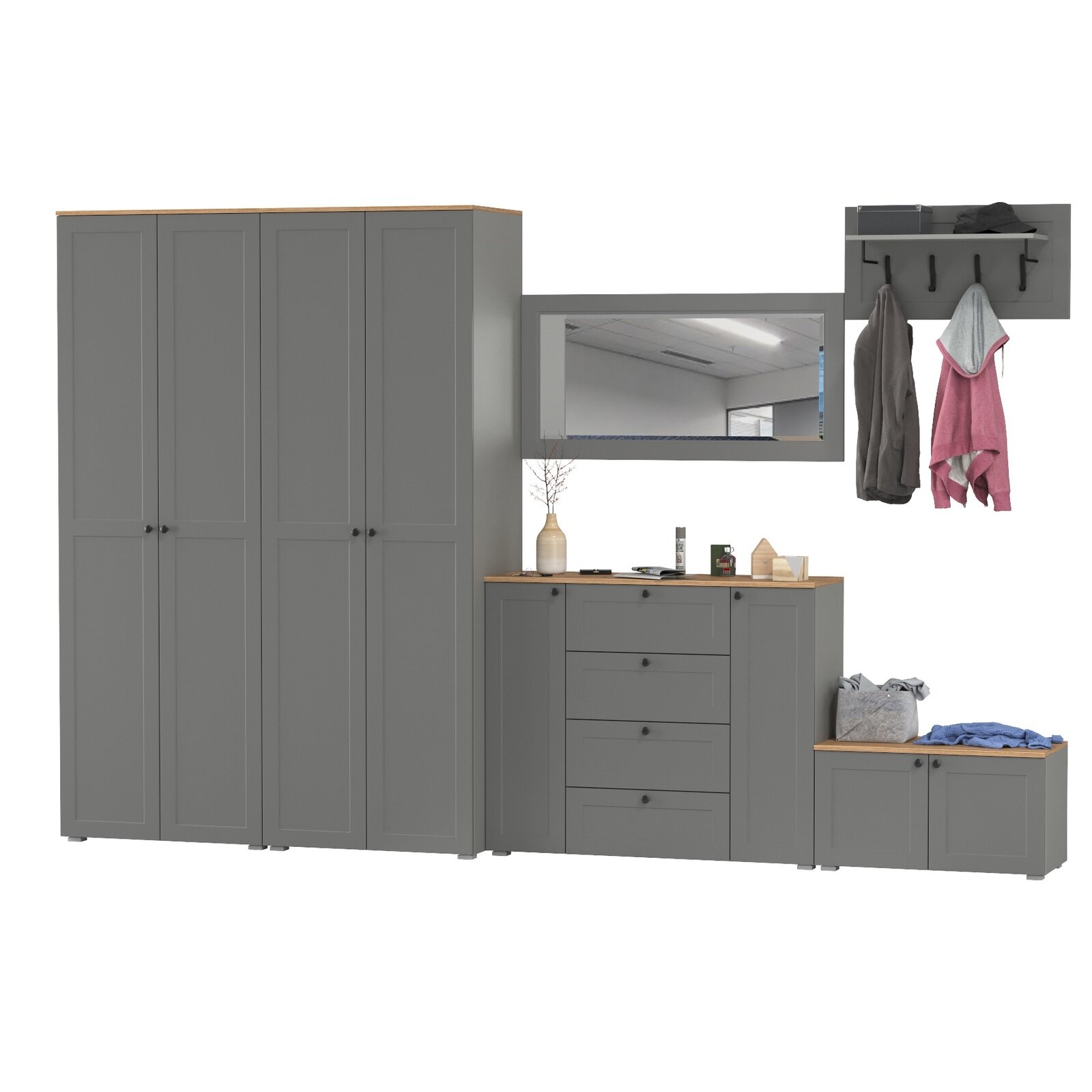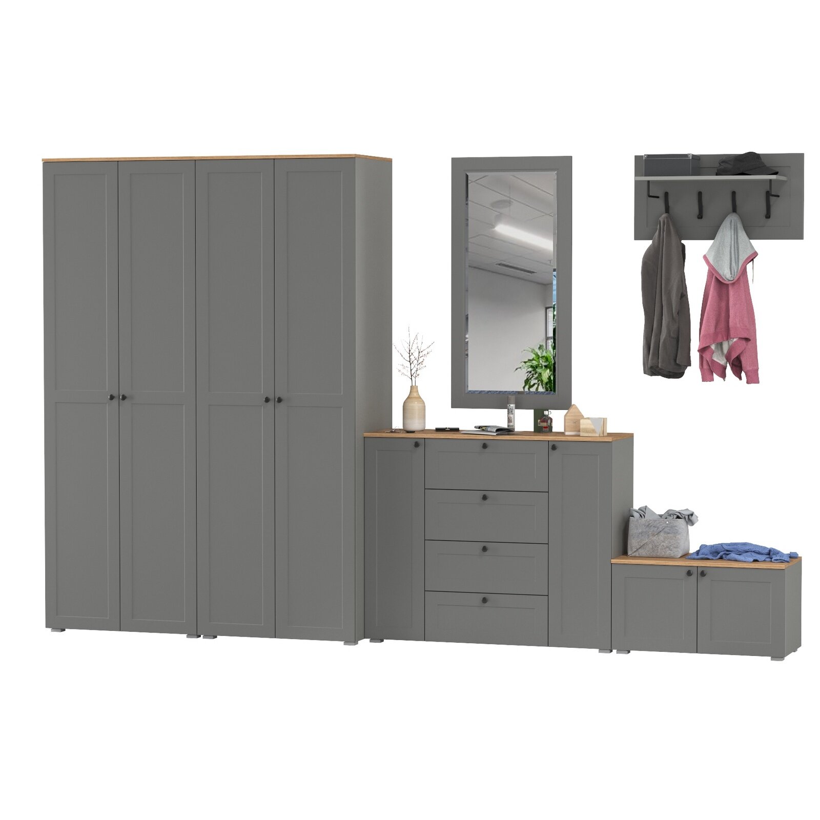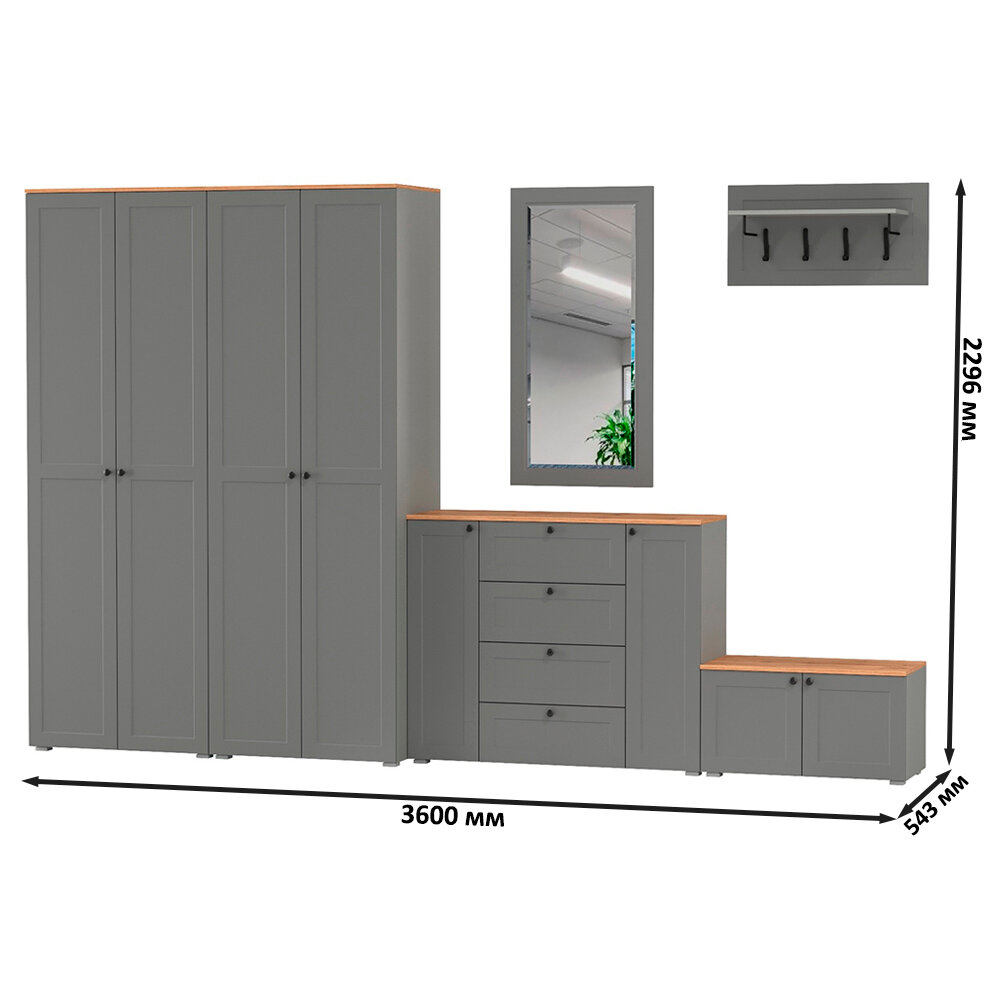 Стенка для прихожей Остин № 54 цвет серый графит/дуб крафт золотой интересное: