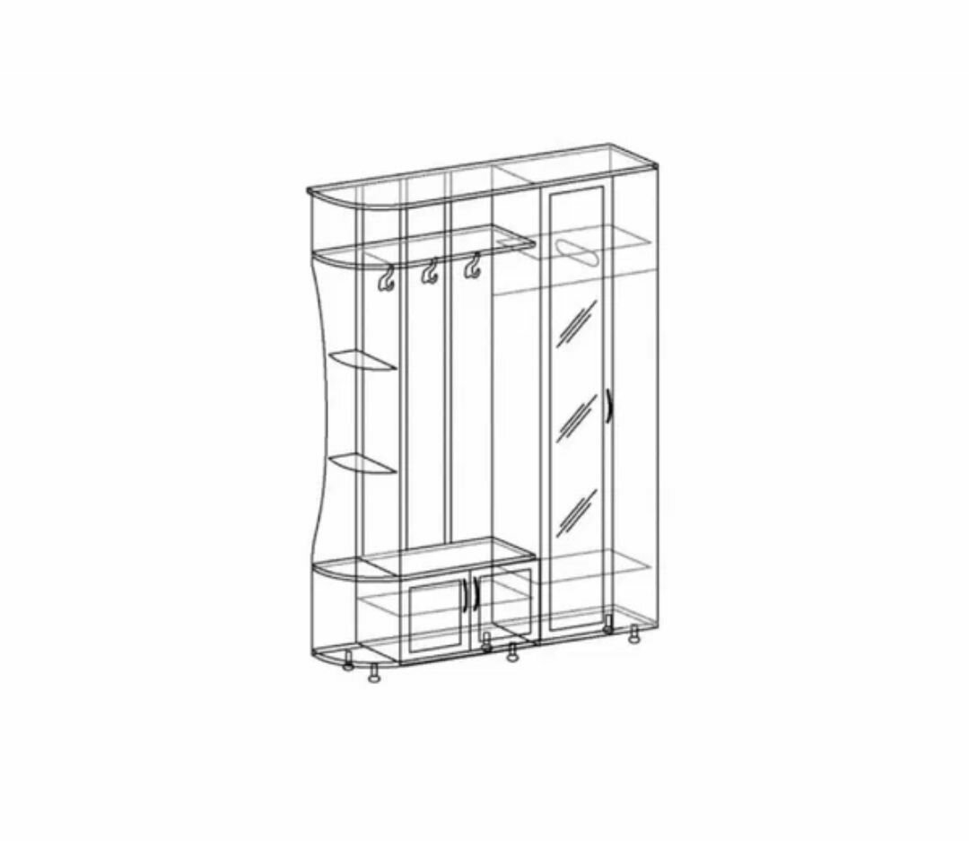 Прихожая комплект САША-6 (правая) от Фант-Мебель, с зеркалом, с обувницей, шкафом и ящиками, 156x203,6x43 см. Ясень темный/Ясень светлый
