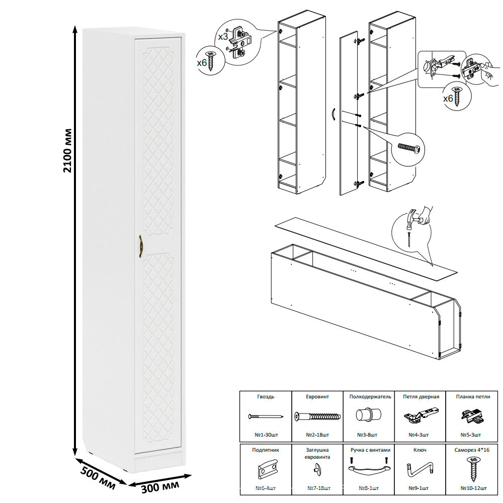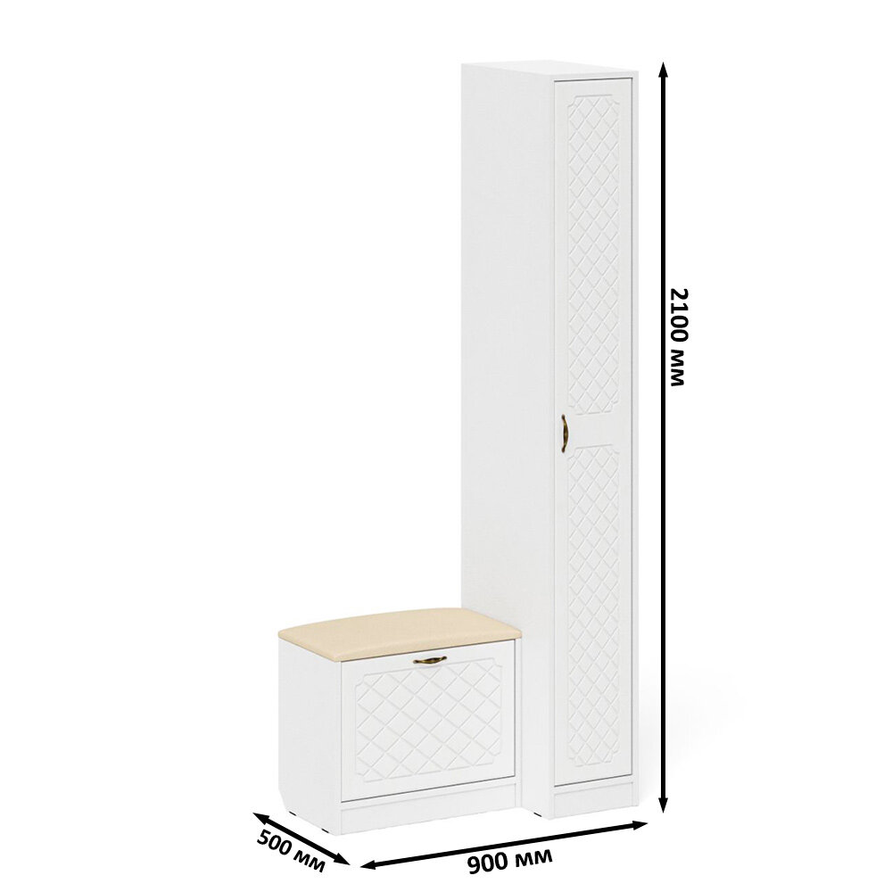 Прихожая Мебельный Двор П-6 Компоновка № 39 белая шагрень/белое дерево ромб, 90х50х210 см интересное: