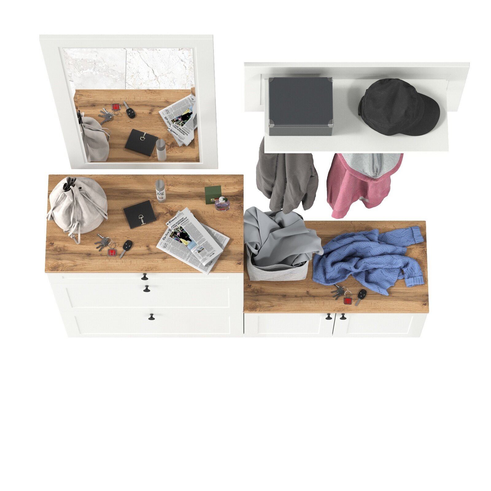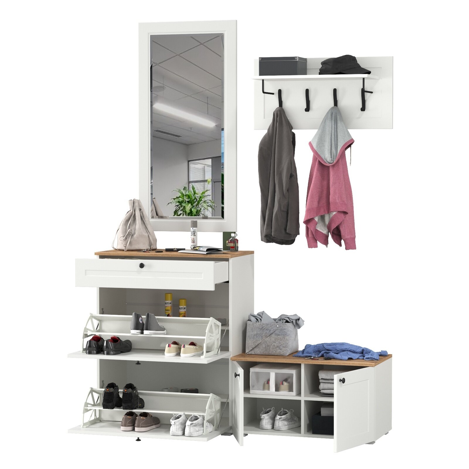 Комплект прихожей "BOSA" K8АП с подушкой и антресолью (1200*2183*444) Белый