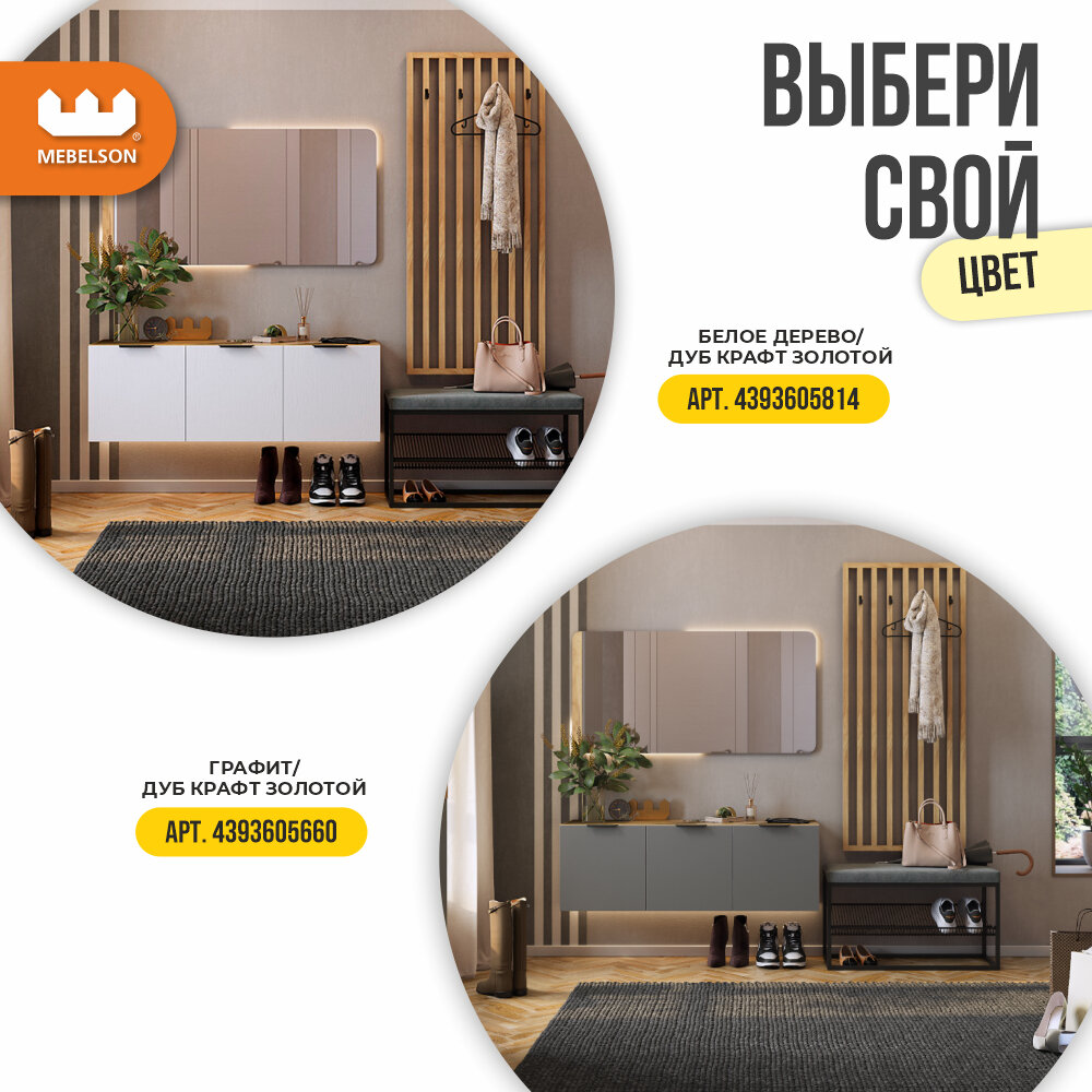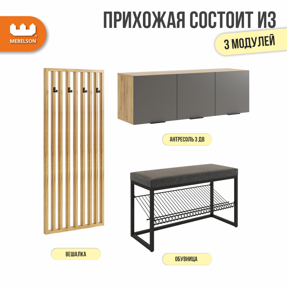Модульная прихожая "Бери К6", дуб крафт золотой/графит, 200х350х190 см, Mebelson интересное: